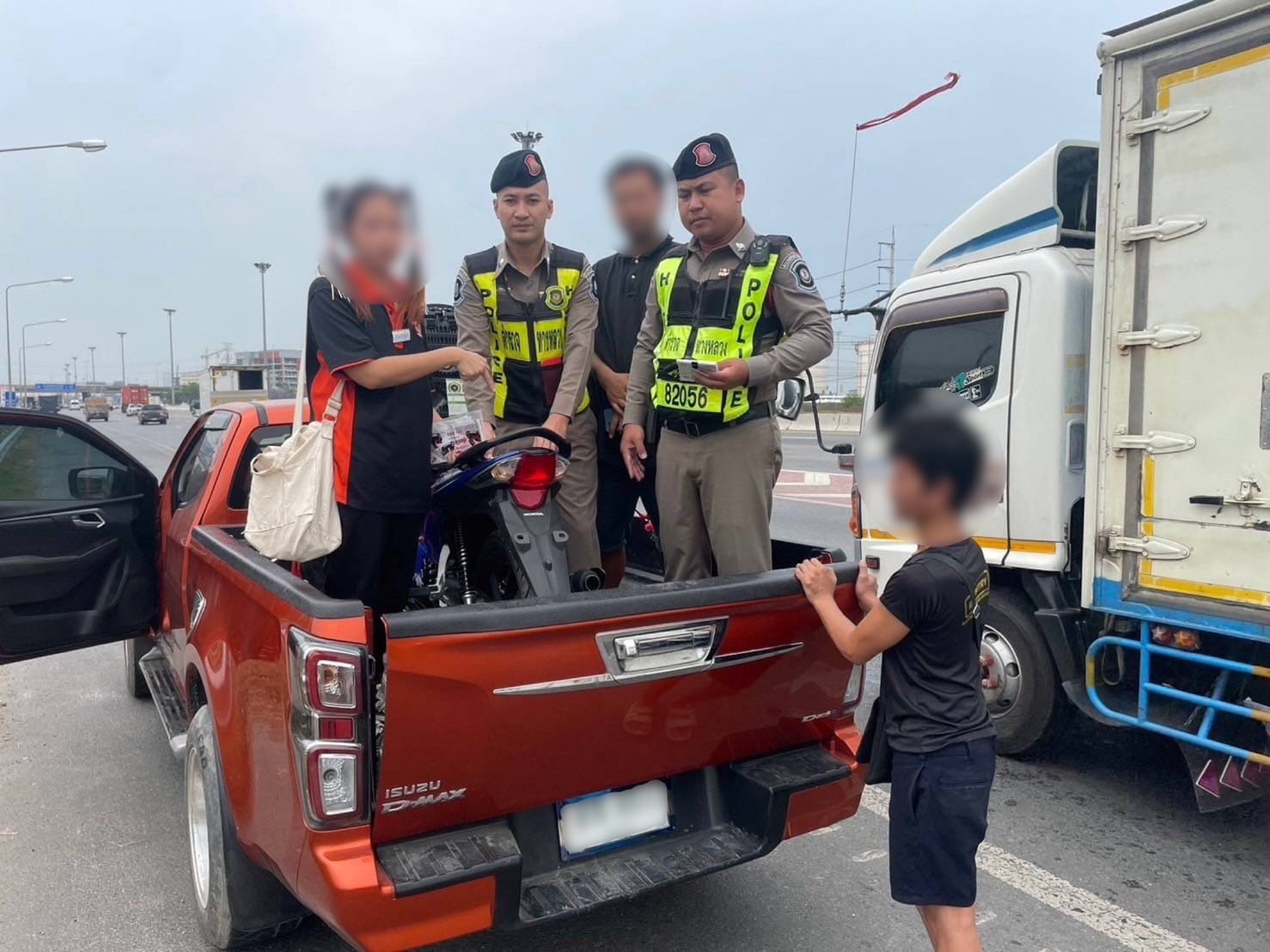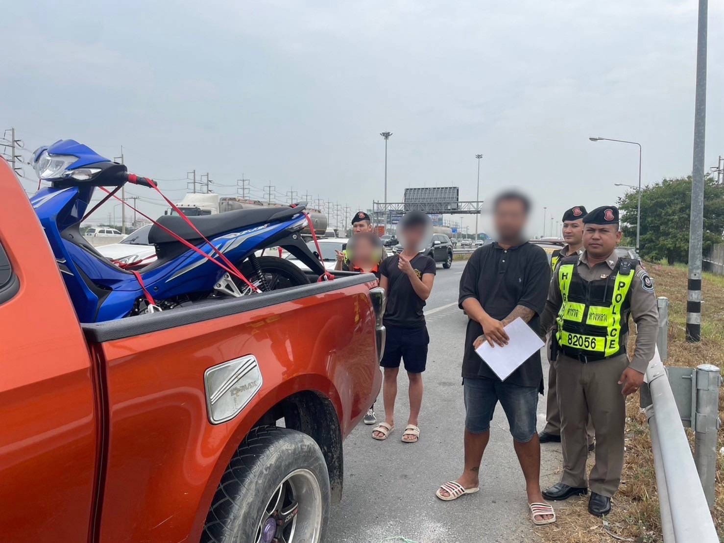 สถานที่จับกุม บริเวณ กม.ที่ 31+200 ถ.กาญจนาภิเษก (วงแหวนตะวันออก) มุ่งหน้าบางนา ต.ลาดสวาย อ.ลำลูกกา จ.ปทุมธานี พฤติการณ์ ศูนย์วิทยุของทางหลวงได้รับแจ้งว่า มีคนขับแท็กซี่ขอความช่วยเหลือให้ติดตามรถกระบะที่กำลังบรรทุกร จักรยานยนต์ ซึ่งได้วิ่งเข้า ถ.กาญจนาภิเษก (วงแหวนตะวันตก) โดยแจ้งว่าขณะนี้ผู้โดยสารของตนกำลังติดตามรถจักรยานยนต์ที่ถูกขโมยไป จากนั้นเจ้าหน้าที่ตำรวจทางหลวงได้ไปตรวจสอบรถยนต์กระบะคันดังกล่าว พบว่ามีการบรรทุกรถจักรยานยนต์ของผู้เสียหายจริง เจ้าหน้าที่ตำรวจจึงได้ให้ผู้ขับขี่แสดงตัวทราบชื่อ นายทอ