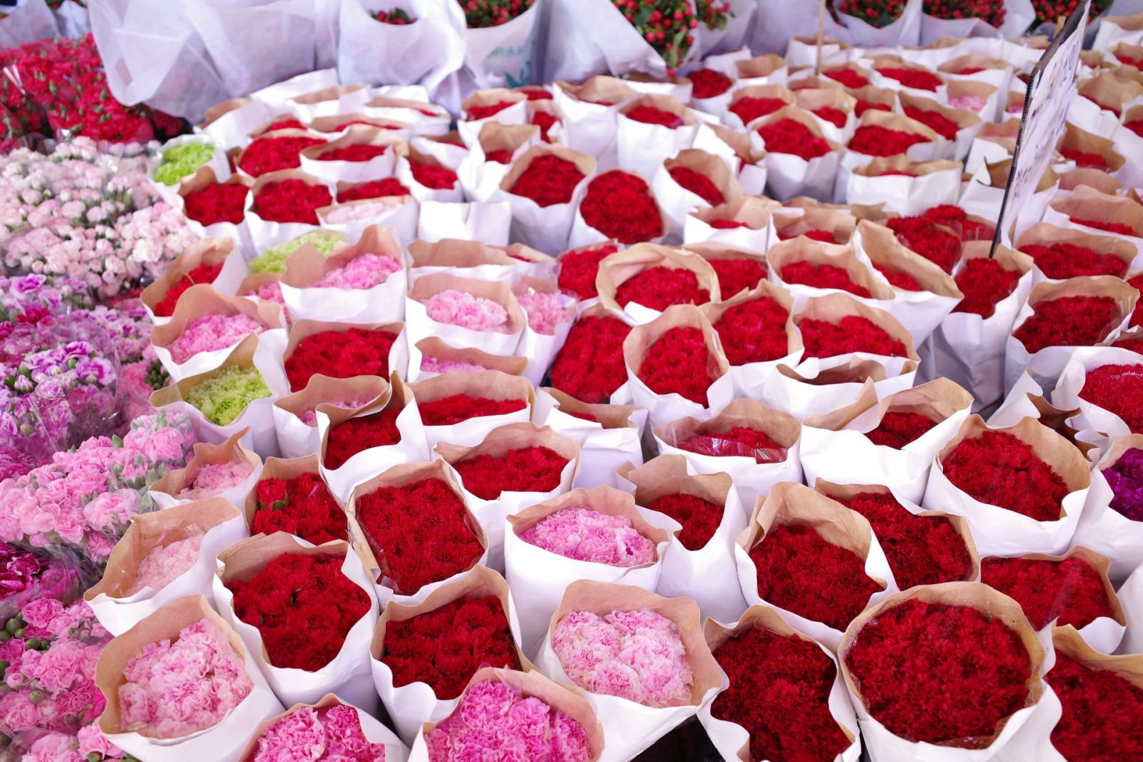 วันนี้ (11 ก.พ. 2566) ผู้สื่อข่าวเดินทางมาดูบรรยากาศการจับจ่ายในตลาดดอกไม้ที่ใหญ่ที่สุดในประเทศ "ปากคลองตลาด" ก่อนวันวาเลนไทน์จะมาถึงในอีกไม่กี่วัน พบว่ามีนักท่องเที่ยวทั้งชาวไทย และชาวต่างชาติ เดินทางมาซื้อดอกไม้กันอย่างคึกคัก โดยเฉพาะดอกกุหลาบจะมียอดขายมากที่สุด โดยกุหลาบแดงครองอันดับ 1 เป็นที่ต้องการของผู้ซื้อมากที่สุด เฉลี่ยราคาเริ่มต้น ดอกละ 50 บาท ถ้าเป็นช่อเริ่มต้นช่อละ 150 บาท หากสั่งช่อใหญ่ขึ้นราคาก็จะขยับตามสี ขนาด และจำนวนของดอกกุหลาบ และดอกไม้ชนิดอื่นๆ ที่ประดับในช่อ