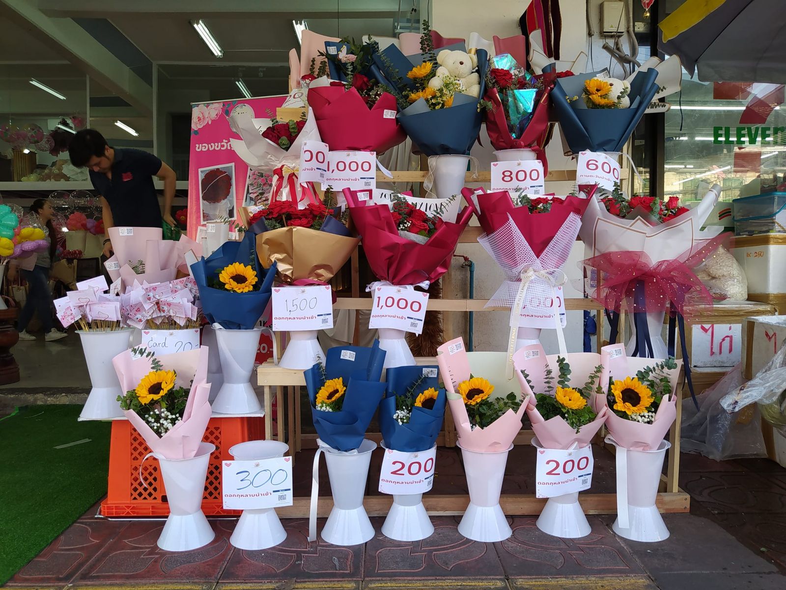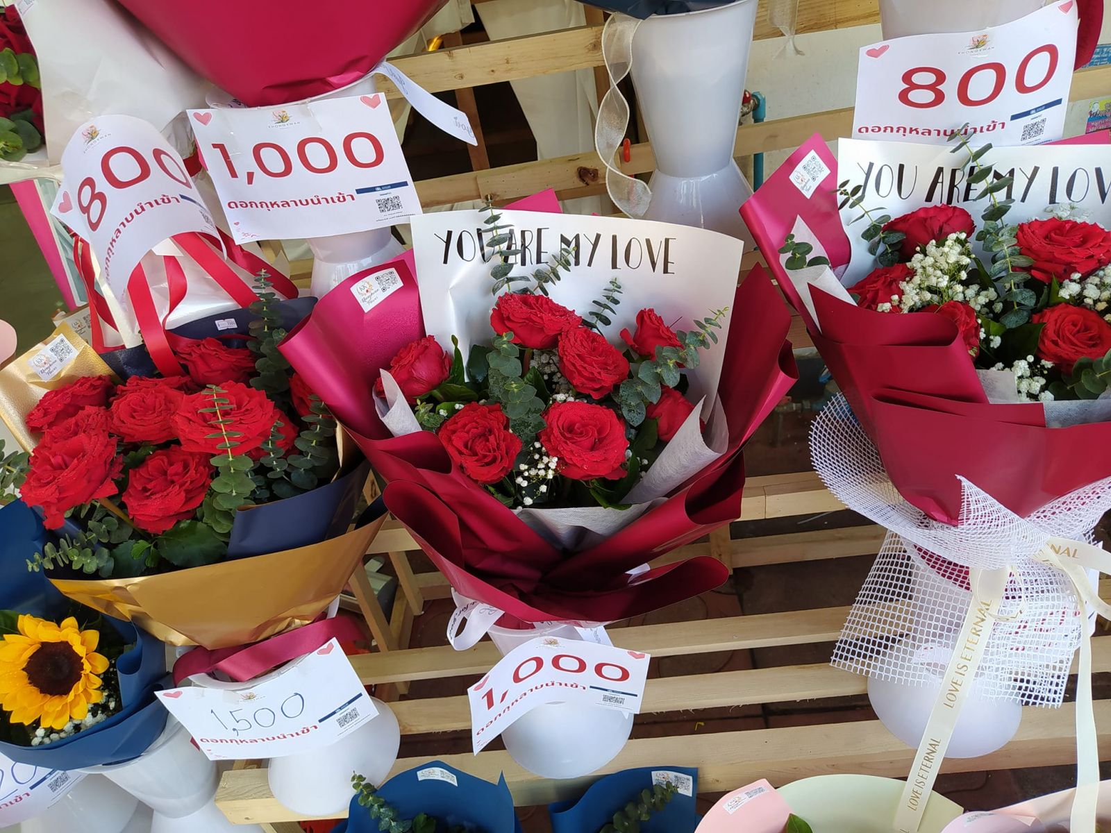 ส่วนดอกกุหลาบที่เป็นที่นิยม คือดอกกุหลาบจากเชียงใหม่แม่สอด ราคาอยู่ที่ดอกละ 50 บาท ส่วนดอกกุหลาบนำเข้าจากต่างประเทศ อาทิ จากคุนหมิง ประเทศจีน และฮอลแลนด์ ราคาดอกละ 150-300 บาท ในขณะที่ดอกกุหลาบสีชมพู และสีอื่นๆ ก็ได้รับความนิยมมากขึ้น เพราะราคาถูกกว่าสีแดง
