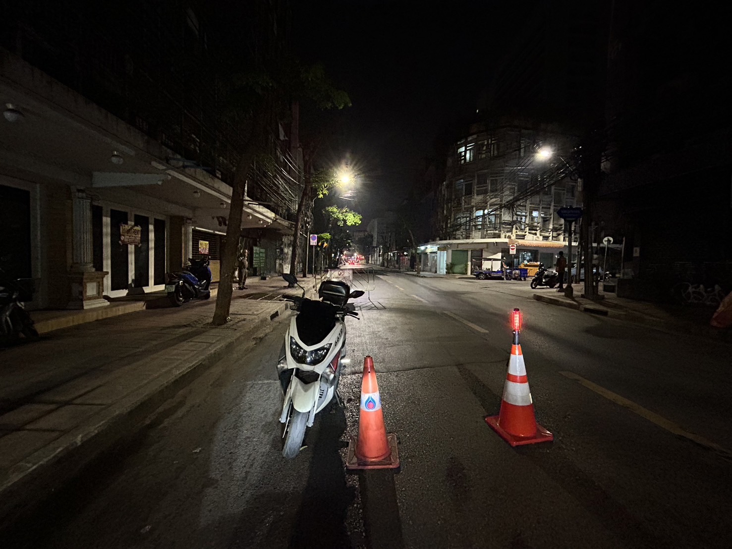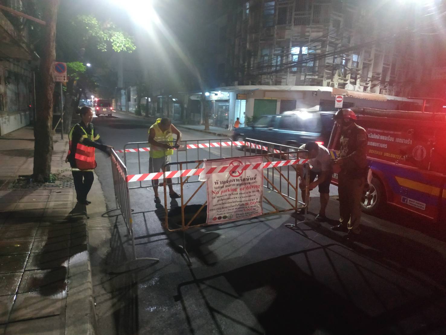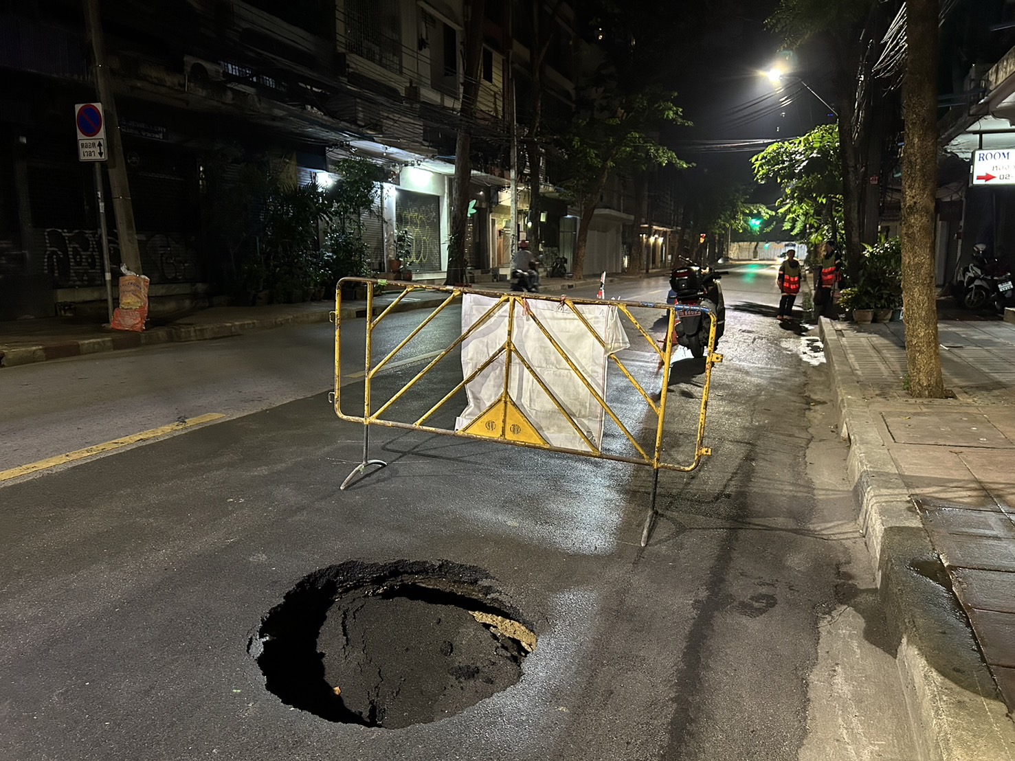 ล่าสุด เจ้าหน้าที่สถานีดับเพลิงและกู้ภัยบางรักถึงที่เกิดเหตุ เบื้องต้นลักษณะที่เกิดเหตุ ถนนทรุดตัวเส้นผ่าศูนย์กลางประมาน 1 เมตรเจ้าหน้าที่สำนักงานเขตบางรัก ทำการล้อมรั้วเหล็กและปิดกั้นเป็นที่เรียบร้อย ประสานหน่วยงานที่เกี่ยวข้องดำเนินการต่อ