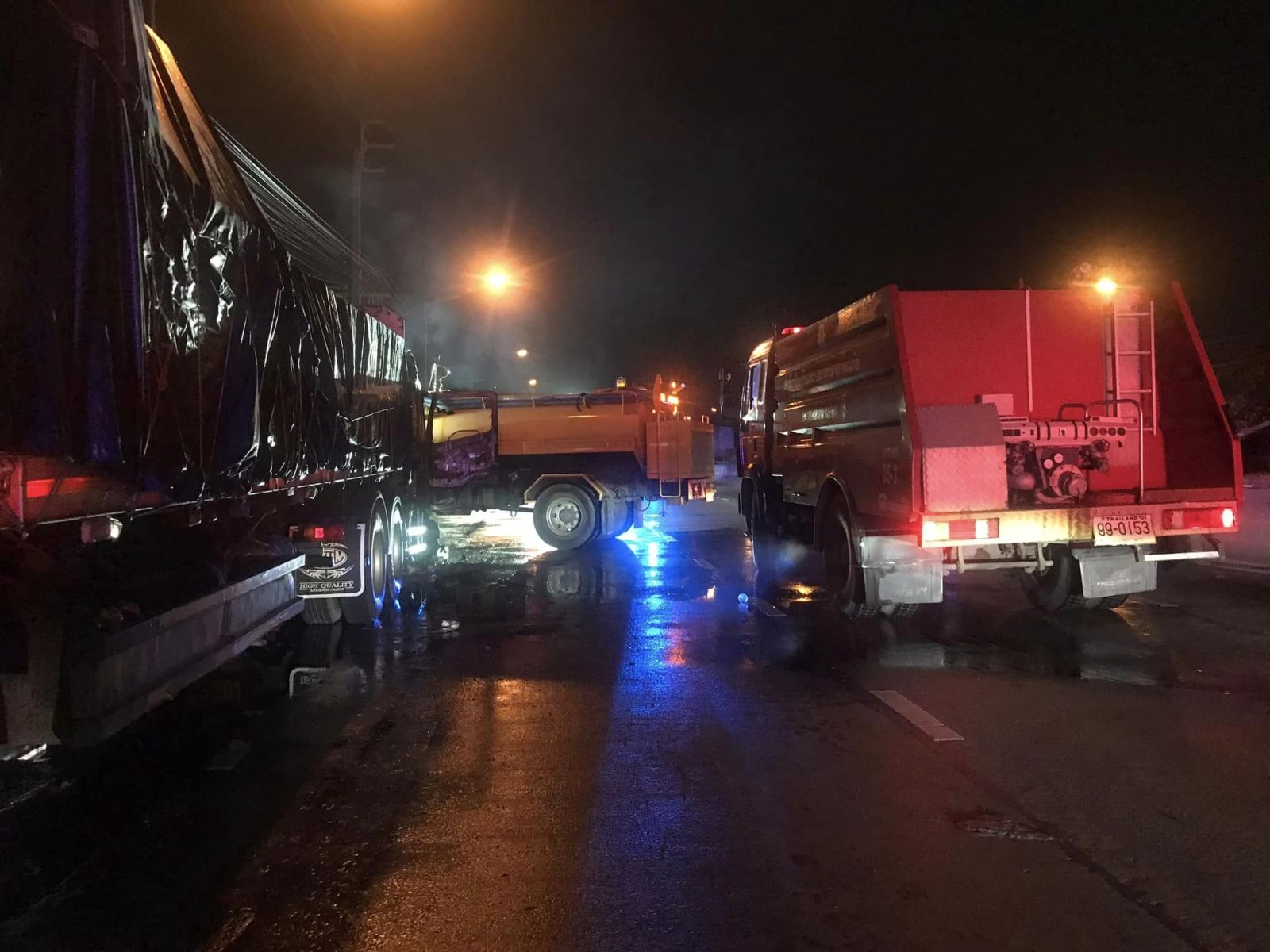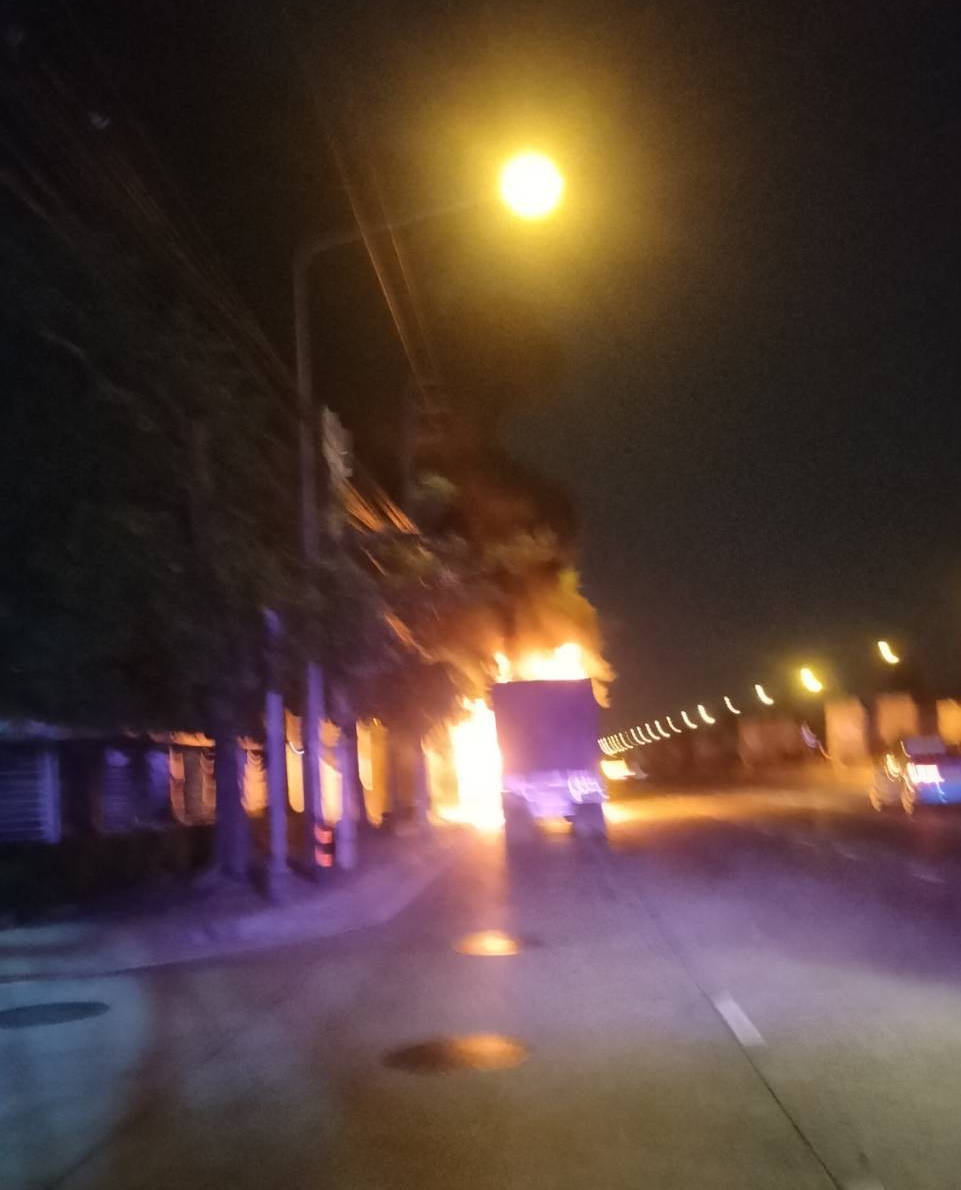 ไฟไหม้รถบรรทุก ริมถนนประเสริฐมนูกิจ เสียหายที่ห้องเครื่องและหัวเก๋ง หวิดวอดทั้งคัน
