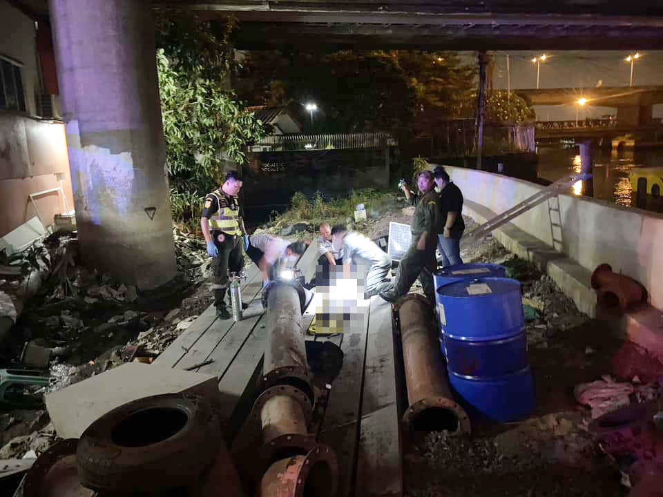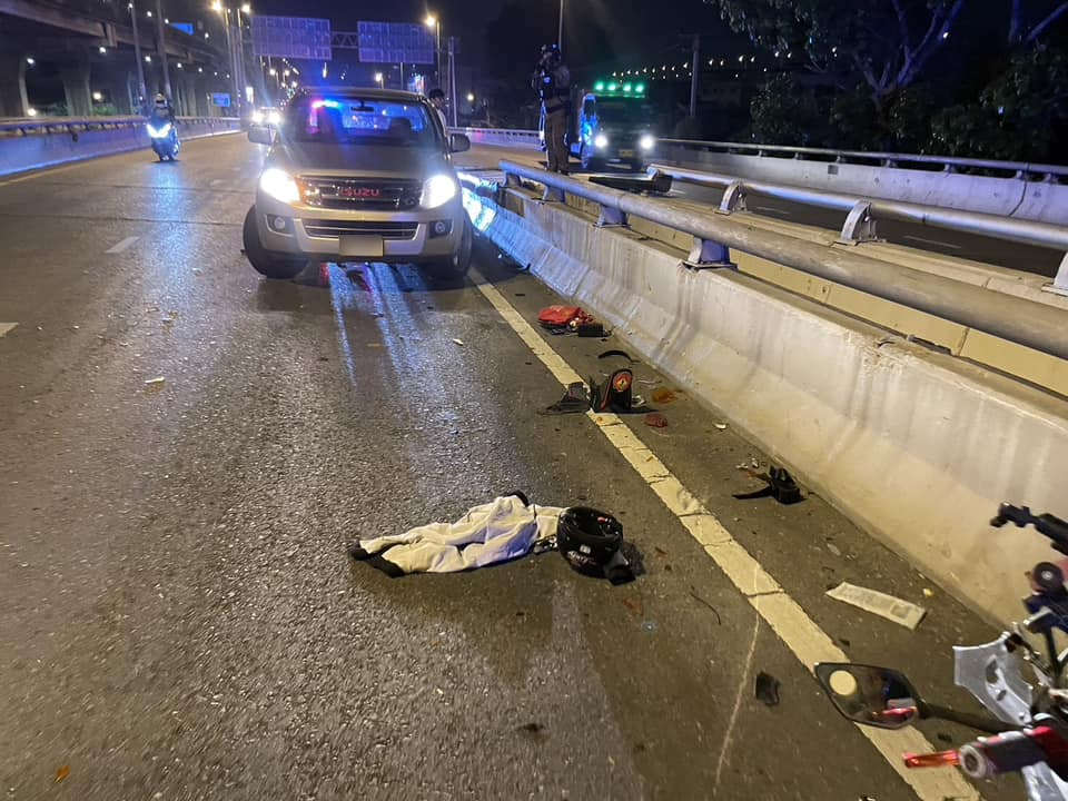 หนุ่มใหญ่วัย 44 ปีขี่รถจักรยานยนต์เสียหลักชนเสาปูนก้างปลาเชิงสะพานข้ามคลองบางกอกน้อย ร่างกระเด็นตกพื้นถนนด้านล่าง กู้ภัยทำ CPR ไม่เป็นผล