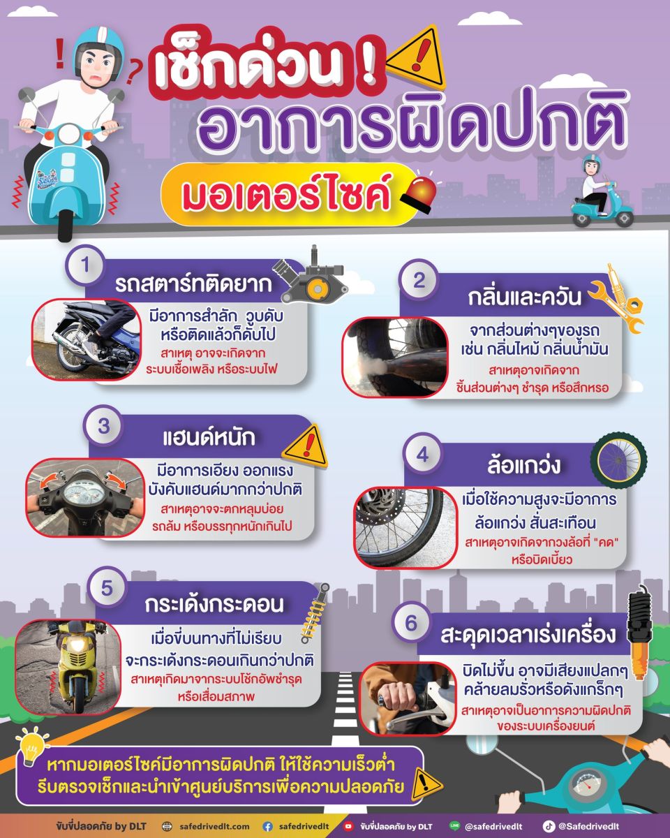 หากมอเตอร์ไซค์มีอาการผิดปกติดังกล่าว ให้ใช้ความเร็วต่ำ รีบตรวจเช็กและนำเข้าศูนย์บริการเพื่อความปลอดภัยในการเดินทาง