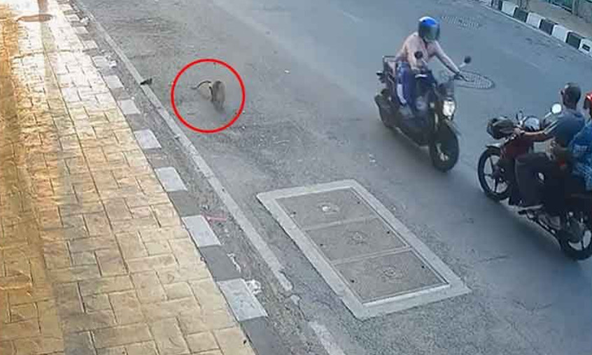 ภาพจากกล้องวงจรปิด พบว่าลิงกระโดดขึ้นแย่งของ จากรถจักยานยนต์ จนรถเสียหลักพุ่งไปชนกับรถจักยานยนต์อีกคัน จนล้มคว่ำ และมีฝูงลิง เตรียมเข้ามาแย่งอาหารจากเจ้าของรถ แต่พลเมืองดีที่อยู่ในที่เกิดเหตุ ได้เข้าไปช่วยไล่ลิง ทำให้ลิงแย่งอาหารไปได้แค่ชุดเดียว