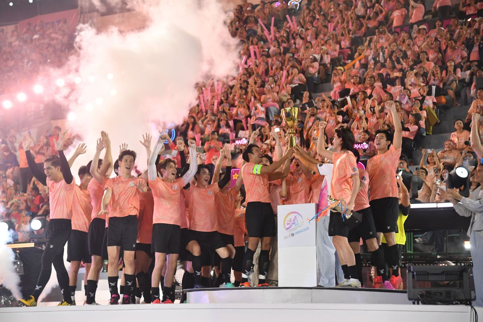 จนกระทั่งช่วงเวลาสุดท้ายลูกโทษเท่านั้นที่จะตัดสิน และความฮึกเหิมของ สีพีช จึงซัดลูกโทษเข้าประตูได้มากกว่า เกมพลิก สีพีช กลายเป็นผู้ชนะด้วยคะแนน 6 ต่อ 4 คว้าชัยไปในที่สุด ท่ามกลางความดีใจของ ผู้จัดการทีม “เจนี่ เทียนโพธิ์สุวรรณ์” และสองกัปตันสุดแซ่บ “เกรท-กลัฟ” ช่วงเวลานี้อะไรก็เกิดขึ้นได้จริง ๆ ทั้ง ๆ ที่ ทีม สีฟ้า ของ “แอน ทองประสม” และ กัปตัน “บอย-เก้า” เป็นฝ่ายนำมาตลอดตั้งแต่ครึ่งแรก ปีหน้าคงต้องนัดล้างตากันใหม่ ส่วนตำแหน่ง แมนออฟเดอะแมตช์ ศึกฟุตบอลหยุดโลก