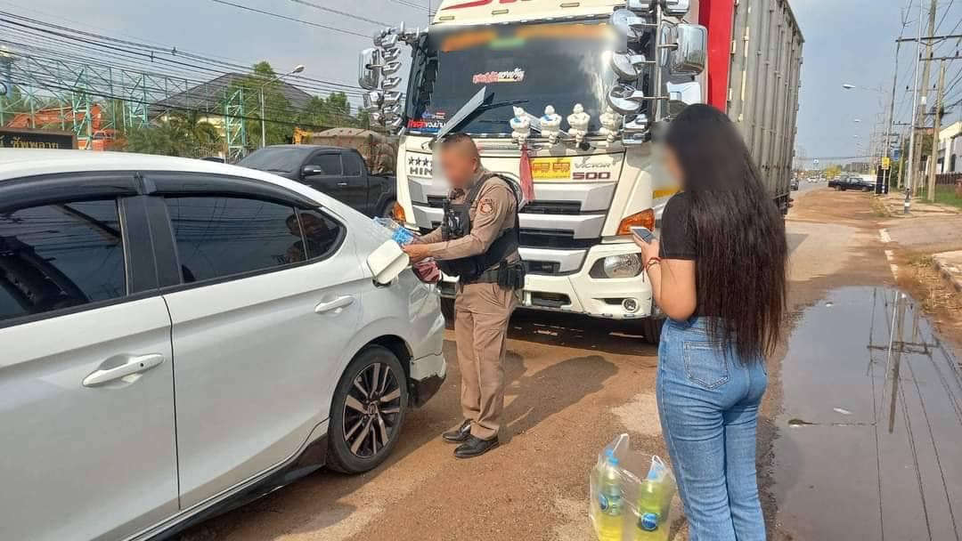 ตำรวจช่วยเหลือประชาชนน้ำมันหมด "แต่ซื้อน้ำมันมาเติมให้ผิด" พร้อมรับผิดชอบค่าเสียหาย จ.ขอนแก่น