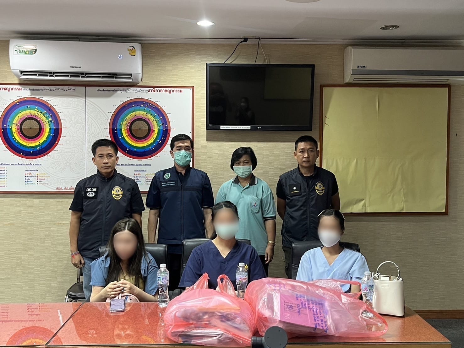 จากการตรวจสอบ เจ้าหน้าที่สามารถจับกุมพนักงานคลินิก ได้จำนวน 3 คน ประกอบด้วย น.ส. ก. (นามสมมุติ) อายุ 20 ปี ทำหน้าที่เป็นพนักงานต้อนรับ ชำระเงิน และจัดทำประวัติลูกค้า ขณะที่ น.ส. พ. (นามสมมุติ) อายุ 30 ปี ทำหน้าที่เป็นผู้ช่วยหมอผสมสูตรยาวิตามิน ส่วน น.ส. ว. (นามสมมุติ) อายุ 33 ปี ทำหน้าที่หมอฉีดยาให้กับลูกค้าผู้ใช้บริการรักษาอาการเกี่ยวกับผิวพรรณร่างกาย (เสริมความงาม)