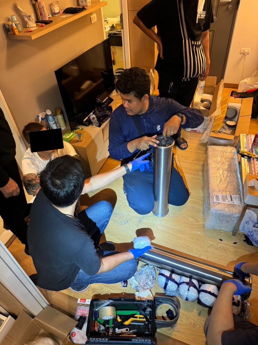 ต่อมาเจ้าหน้าที่ตำรวจกองกำการสืบสวน กองบังคับการตำรวจนครบาล 1 จึงได้นำกำลังเจ้าหน้าที่ตำรวจชุดจับกุมไปเฝ้าสืบสวนหาข่าว จนกระทั่งเวลาประมาณ 04.30 น. ของวันที่ 27 มีนาคม 2567 พบ ชาวต่างชาติ ตำหนิ รูปพรรณ ตามที่สายลับแจ้ง ลักษณะท่าทางมีพิรุธต้องสงสัยคล้ายจะมีสิ่งของผิดกฎหมายเจ้าหน้าที่ตำรวจจึงได้เข้าไปทำการตรวจค้นและจับกุมผู้ต้องหาชาวต่างชาติได้ 2 พร้อมด้วยของกลางยาเสพติด (ยาไอซ์) น้ำหนักประมาณ 18.8 กิโลกรัม ซุกซ่อนอยู่ในเครื่องกรองน้ำ บรรจุอยู่ในกล่องพัสดุ บนกล่องพัสดุ มีตัวอักษรภาษาต่างประเทศเขียนว่าเครื่องกรองน้ำ ห่อหุ้มด้วยพลาสติกกันกระแทกเตรียมจัดส่งให้กับลูกค้า ผ่านทางบริษัทขนส่ง-เอกชน ส่วนการชำระค่าธรรมเนียมการส่งพัสดุนั้น จะถ่ายรูป QR CODE ธนาคาร ส่งให้เพื่อนชาวต่างชาติที่เป็นหญิงเป็นคนชำระแทน จึงนำตัวไปสอบปากคำและแจ้งข้อกล่าวหาดำเนินคดีตามกฎหมาย