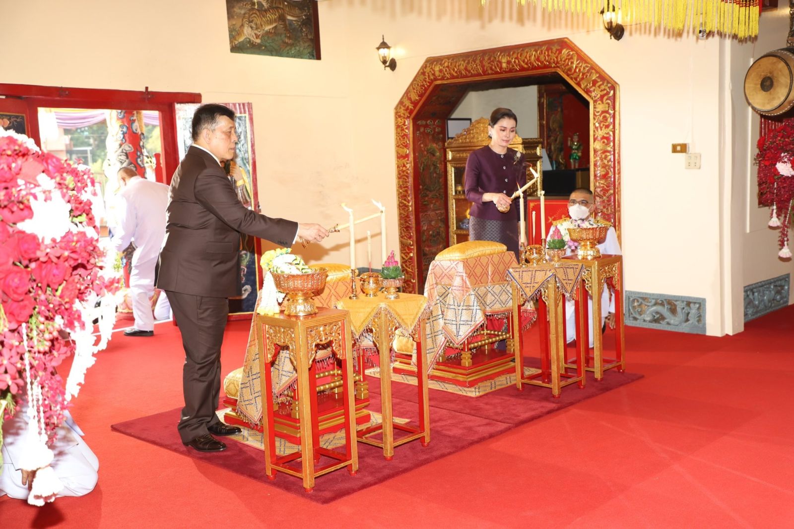 เมื่อเสด็จพระราชดำเนินถึงวัดพนัญเชิงวรวิหาร นายอนุทิน ชาญวีรกูล รองนายกรัฐมนตรี และรัฐมนตรีว่าการกระทรวงมหาดไทย นายสุทธิพงษ์ จุลเจริญ ปลัดกระทรวงมหาดไทย นายนิวัฒน์ รุ่งสาคร ผู้ว่าราชการจังหวัดพระนครศรีอยุธยา ผู้พิพากษาหัวหน้าศาลจังหวัดพระนครศรีอยุธยา แม่ทัพภาคที่ 1 ผู้บัญชาการตำรวจภูธรภาค 1 และคณะกรรมการวัดพนัญเชิงวรวิหาร ฯ พร้อมด้วยข้าราชการ และประชาชน เฝ้าทูลละอองธุลีพระบาทรับเสด็จ จากนั้น พระบาทสมเด็จพระเจ้าอยู่หัว และสมเด็จพระนางเจ้า ฯ พระบรมราชินี เสด็จขึ้นพระอุโบสถ ทรงจุดธูปเทียนเครื่องนมัสการทองทิศบูชาพระพุทธปฏิมา พระประธานพระอุโบสถ ทรงกราบ ทรงศีล ประธานสงฆ์ถวายศีล จากนั้น พระราชทานพระบรมราชวโรกาสให้ ผู้ว่าราชการจังหวัดพระนครศรีอยุธยา เฝ้าทูลละอองธุลีพระบาท กราบบังคมทูลรายงาน และขอพระราชทานกราบบังคมทูลเชิญเสด็จพระราชดำเนินไป ทรงประกอบพิธีสมโภช “พระพุทธไตรรัตนนายก”
