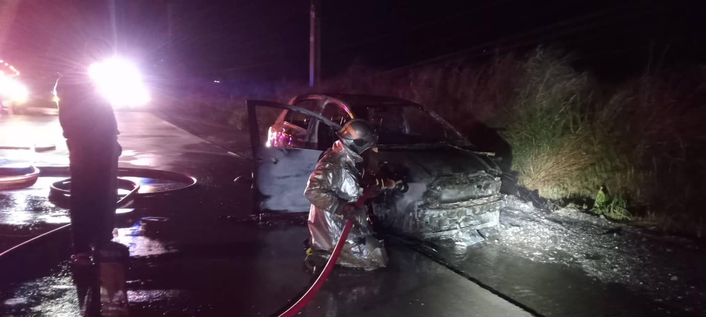 ไฟไหม้รถเก๋งวอดทั้งคันกลางถนนทางหลวงหมายเลข 331 โชคดีที่ 2 หนุ่มสาวหนีรอดออกมาได้หวุดหวิด จ.ชลบุรี