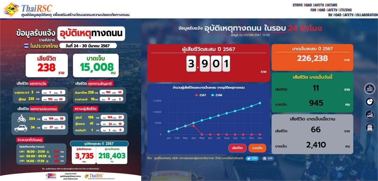 ตามที่ศูนย์อำนวยการความปลอดภัยทางถนน ได้เตรียมมาตรการด้านความปลอดภัยการใช้รถใช้ถนนด้านต่างๆ ในช่วงการรณรงค์ป้องกันและลดอุบัติเหตุทางถนนช่วงเทศกาลสงกรานต์ พ.ศ. 2567 มีเป้าหมายเพื่อให้ประชาชนเดินทางอย่างสุขใจห่างไกลจากอุบัติเหตุตลอดช่วงเทศกาลสงกรานต์ โดย บริษัท กลางคุ้มครองผู้ประสบภัยจากรถ จำกัด ได้มีแผนงานมาตรการป้องกันและลดอุบัติเหตุทางถนนช่วงเทศกาลได้แก่ ศูนย์ข้อมูลอุบัติเหตุทางถนน www.Thairsc.com บริษัทกลางฯ ได้ดำเนินการจัดส่งข้อมูลอุบัติเหตุทางถนนให้กับสื่อมวลชนและหน่วยงานภาคีเครือข่ายรณรงค์ป้องกันและลดอุบัติเหตุเป็นประจำทุกวันอย่างต่อเนื่อง เพื่อสร้างการรับรู้และความตระหนักในเรื่องของอุบัติเหตุและเพื่อหน่วยงานได้นำข้อมูลไปวางแผนการแก้ไขปัญหาความปลอดภัยทางถนน ทั้งในและนอกช่วงเทศกาล นอกจากนี้ประชาชนที่เดินทาง ก็ยังสามารถเข้ามาดู เพื่อค้นหาข้อมูลจุดเสี่ยง จุดที่เกิดอุบัติเหตุบ่อยครั้ง ในทุกจังหวัดทั่วประเทศ,ทราบว่าพื้นที่ที่จะเดินทางไป มีจุดที่ต้องระมัดระวังที่ใดบ้าง ได้อีกด้วย