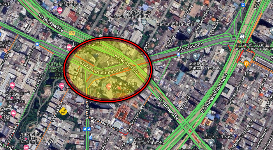เวลา 22.55 น. วันที่ 3 เมษายน 2567 เจ้าหน้าที่กำลังปฏิบัติงาน ปิดการจราจร สะพานข้ามแยกสามเหลี่ยมดินแดง เบี่ยงรถใช้พื้นราบถนนดินแดง การจราจรผ่านได้ตามสัญญาณไฟจราจร