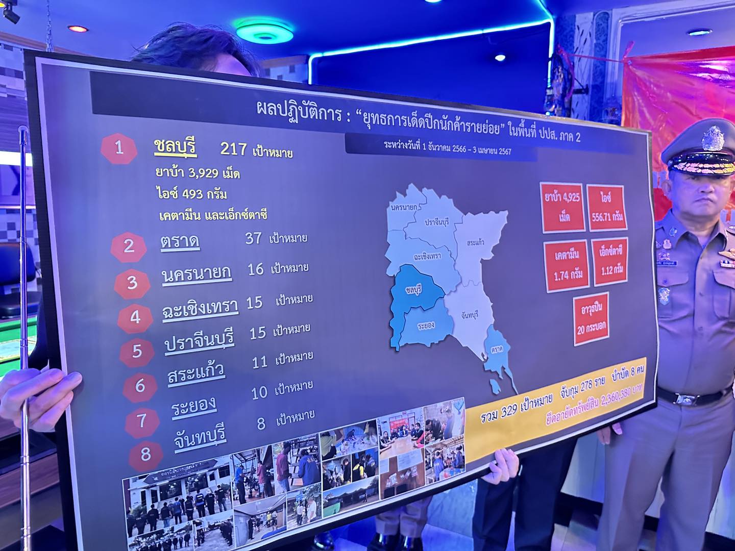 ป.ป.ส. ปฏิบัติการยึดทรัพย์แก๊งบิ๊กไบค์ขนยา มูลค้าเกือบ 30 ล้าน พร้อมแถลงผล “ยุทธการเด็ดปีกผู้ค้ารายย่อย” ภาคตะวันออก 329 เป้าหมาย จับกุม 278 คน