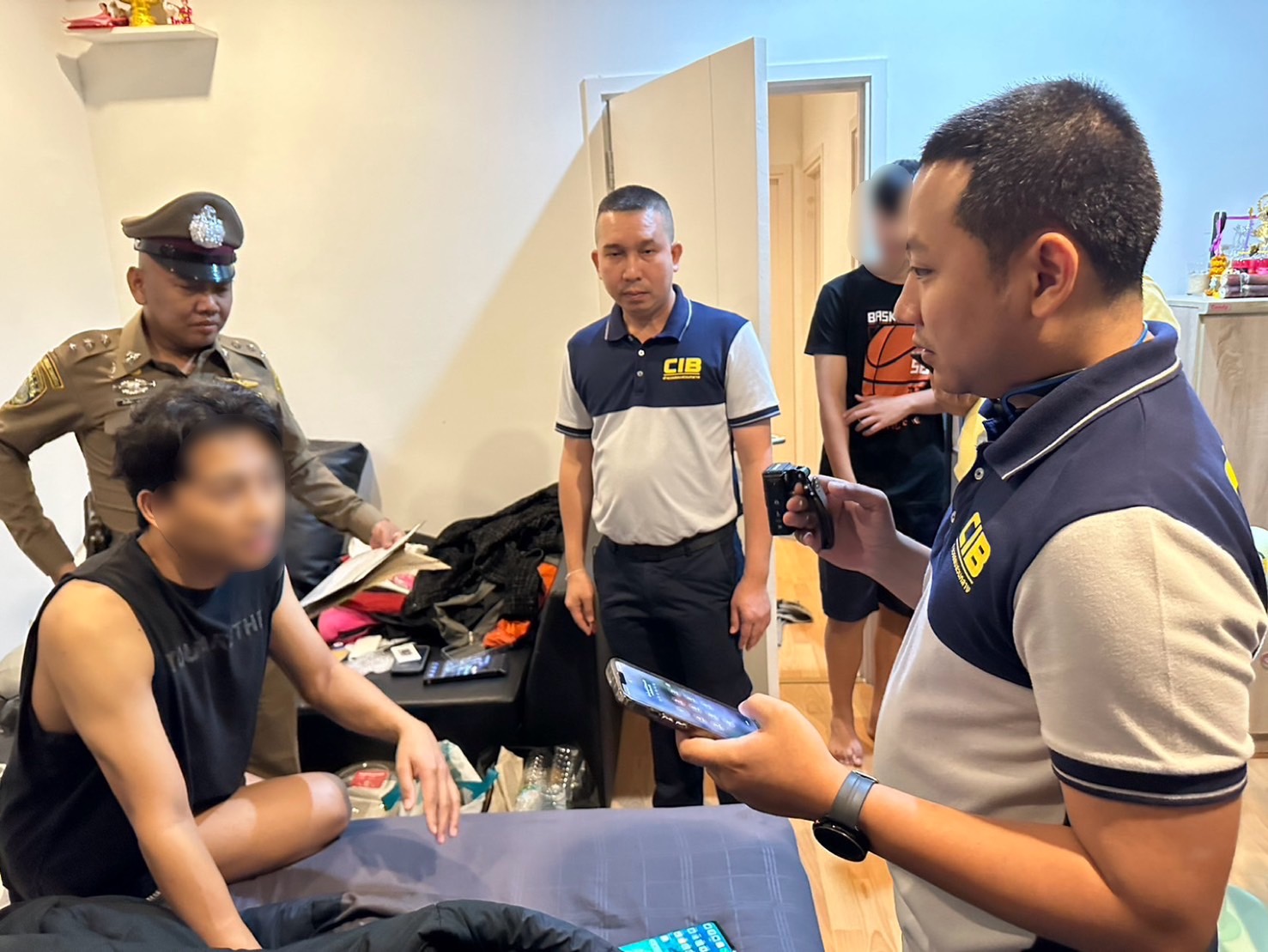 6.) นายชัย (นามสมมุติ) อายุ 30 ปี ผู้ต้องหาตามหมายจับ ศาลอาญาที่ 1336/2567 ลง 29 มี.ค.67 สถานที่จับกุม คอนโดย่าน ถ.พหลโยธิน แขวงจอมพล เขตจตุจักร กรุงเทพมหานคร