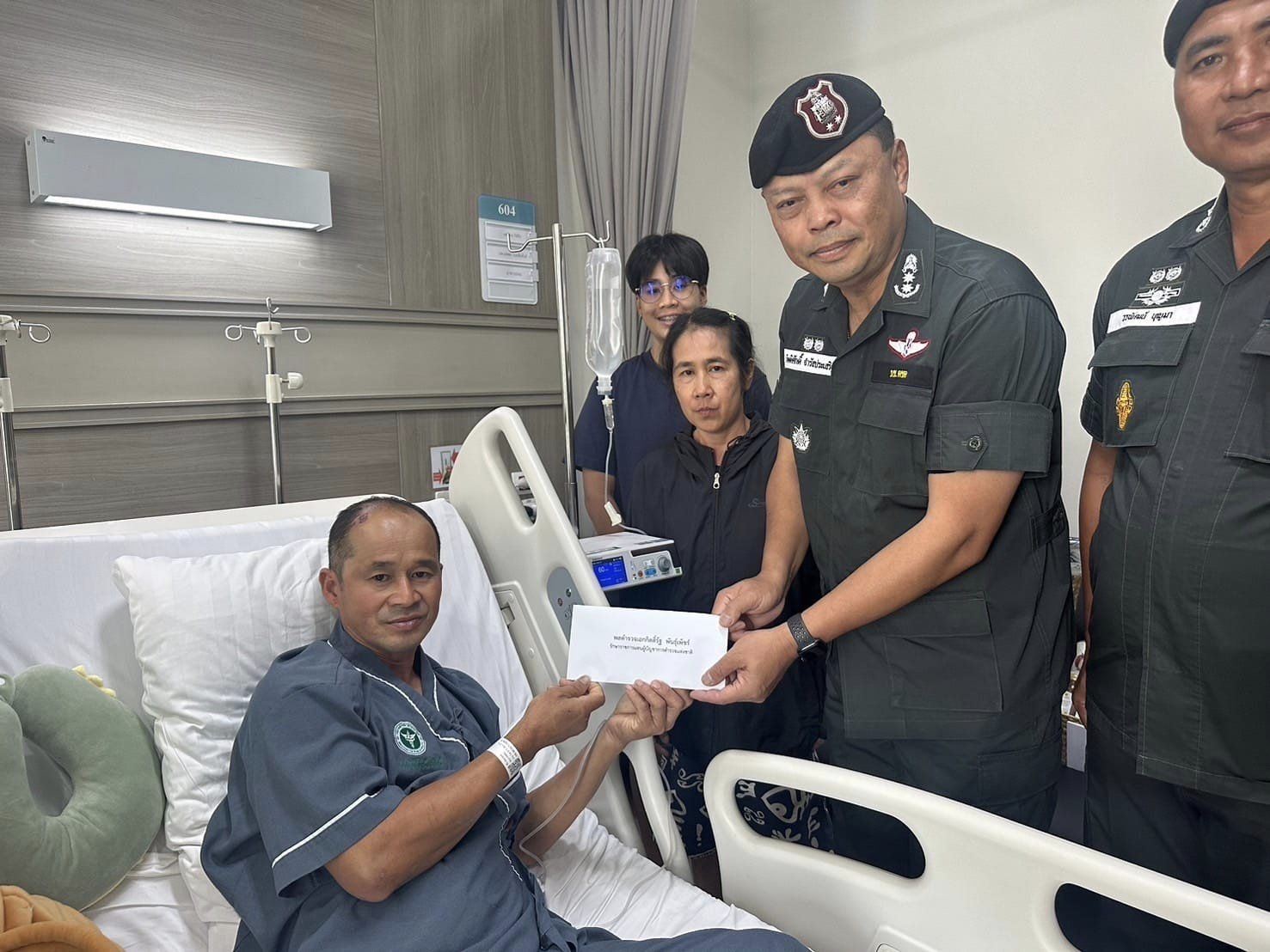 วันนี้ (8 เมษายน 2567) ที่โรงพยาบาลเชียงรายประชานุเคราะห์ อำเภอเมืองเชียงราย จังหวัดเชียงราย พลตำรวจเอก กิตติ์รัฐ พันธุ์เพ็ชร์ รองผู้บัญชาการตำรวจแห่งชาติ รักษาราชการแทนผู้บัญชาการตำรวจแห่งชาติ (รองผบ.ตร.รรท.ผบ.ตร.) มอบหมายให้ พลตำรวจตรี กิตติศักดิ์ จำรัสประเสริฐ รองผู้บัญชาการตำรวจตระเวนชายแดน พร้อมด้วย พลตำรวจตรี วรพัฒน์ บุญมา ผู้บังคับการตำรวจตระเวนชายแดนภาค 3 และคณะ เป็นผู้แทนเดินทางไปตรวจเยี่ยม มอบกระเช้า และมอบเงินสวัสดิการ ของ รรท.ผบ.ตร. และ ผู้บัญชาการตำรวจตระเวนชายแดน ให้แก่ ร้อยตำรวจตรี ยุทธ กิติลือ ชุดปฏิบัติการเคลื่อนที่เร็ว ร้อย ตชด.326 ซึ่งถูกทำร้ายร่างกายได้รับบาดเจ็บที่ศีรษะ ขณะลาดตระเวนสืบสวนหาข่าวบุคคลที่มีพฤติกรรมเกี่ยวข้องกับยาเสพติดในพื้นที่ อำเภอปง จังหวัดพะเยา เมื่อวันที่ 5 เมษายน 2567 ที่ผ่านมา ปัจจุบันอาการปลอดภัยและอยู่ในการดูแลของแพทย์อย่างใกล้ชิด ในโอกาสนี้ พลตำรวจตรี กิตติศักดิ์ จำรัสประเสริฐ รองผู้บัญชาการตำรวจตระเวนชายแดน ได้นำความห่วงใยของ รรท.ผบ.ตร. และผู้บัญชาการตำรวจตระเวนชายแดน ได้เดินทางไปตรวจเยี่ยมบำรุงขวัญ รวมถึงได้พูดคุยให้กำลังใจแก่ครอบครัว โดย รรท.ผบ.ตร. ได้ฝากคำกล่าวชื่นชม "เป็นกำลังใจ ห่วงใย หายไวๆ จากใจ" ซึ่งร้อยตำรวจตรี ยุทธ กิติลือ ผู้บาดเจ็บ ได้กล่าวว่า “ขอขอบคุณผู้บังคับบัญชาที่ห่วงใย และจะปฏิบัติหน้าที่อย่างเข้มแข็ง ตนมีกำลังใจที่ดีในการปฏิบัติหน้าที่ปราบปรามยาเสพติดต่อไป”