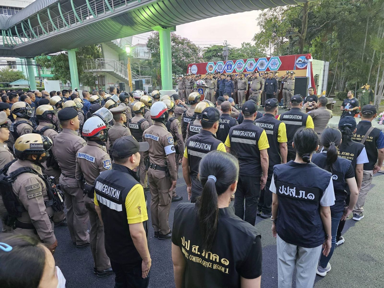 วันที่ 9 เมษายน 2567 พล.ต.ท.ภาณุรัตน์ หลักบุญ เลขาธิการคณะกรรมการป้องกันและปราบปรามยาเสพติด(เลขาธิการ ป.ป.ส. ) มอบหมายให้ นางจีระพรรณ กาญจนประดิษฐ์ ผู้อำนวยการสำนักงานป้องกันและปราบปรามยาเสพติด ภาค 1 (ผอ.ปปส.ภ.1) นำกำลังเจ้าหน้าที่ ป.ป.ส. เข้าร่วมปฏิบัติการ Task Force ขุดรากถอนโคนเครือข่ายยาเสพติด ในพื้นที่จังหวัดสมุทรปราการ โดยมี นายศุภมิตร ชิณศรี ผู้ว่าราชการจังหวัดสมุทรปราการ เป็นประธาน พร้อมด้วย พล.ต.ท.สำราญ นวลมา ผู้ช่วยผู้บัญชาการตำรวจแห่งชาติ, พล.ต.ท.จิรสันต์ แก้วแสงเอก ผู้บัญชาการตำรวจภูธรภาค 1 , พล.ต.ต.ชยานนท์ มีสติ รองผู้บัญชาการตำรวจภูธรภาค 1 , ร่วมด้วยหน่วยงานภาคีที่เกี่ยวข้องเข้าร่วม ณ จังหวัดสมุทรปราการ