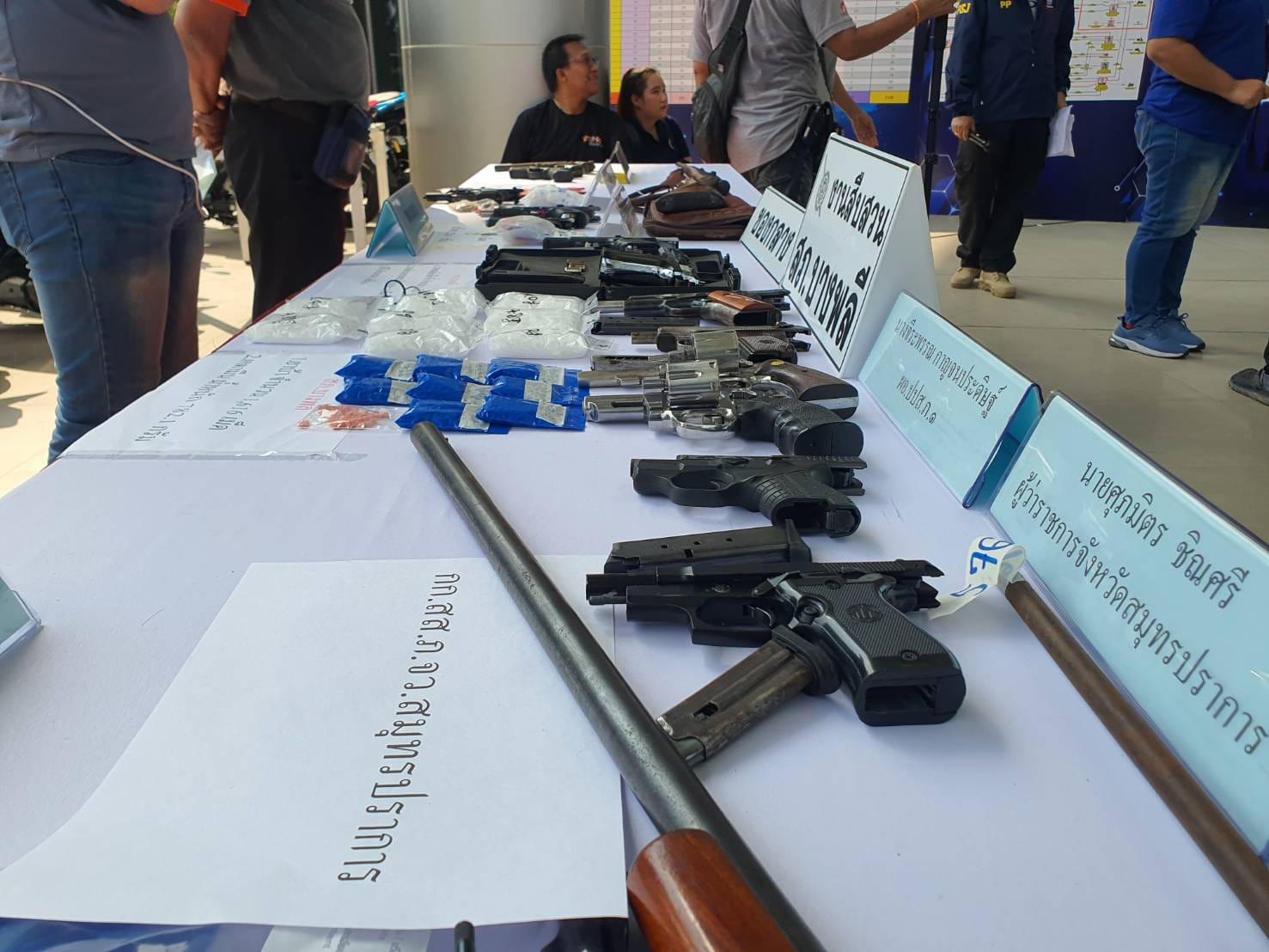 โดยในเวลา 06.00 น. นางจีระพรรณ กาญจนประดิษฐ์ ผอ.ปปส.ภ.1 ได้เข้าร่วมปล่อยแถวปฏิบัติการ TASK FORCE ขุดรากถอนโคนเครือข่ายยาเสพติด และนักค้ารายสำคัญ จังหวัดสมุทรปราการ” ร่วมกับตำรวจภูธรจังหวัดสมุทรปราการ และหน่วยงานภาคีในพื้นที่ ที่ได้มีปฏิบัติการช่วงระหว่างวันที่ 1-9 เมษายน 2567 และได้แถลงผลการปฏิบัติดังนี้ ตรวจค้นพื้นที่เป้าหมายจำนวน 39 เป้า จับกุมหมายจับคดีสมคบกันกระทำความผิดเกี่ยวกับยาเสพติด จำนวน 14 หมาย จับกุมผู้ต้องหาคดีฟอกเงิน จำนวน 4 หมาย ร่วมกันจำหน่ายยาเสพติด จำนวน 3 หมาย จับกุมผู้ค้ายาเสพติด จำนวน 105 ราย ตรวจยึดของกลาง ยาบ้า 6,696 เม็ด ยาไอซ์ จำนวน 223.65 กรัม ยาเค 967.9 กรัม ยาอี จำนวน 178 เม็ด อาวุธปืน จำนวน 28 กระบอก รวมมูลค่าทรัพย์สินกว่า 6 ล้านบาท