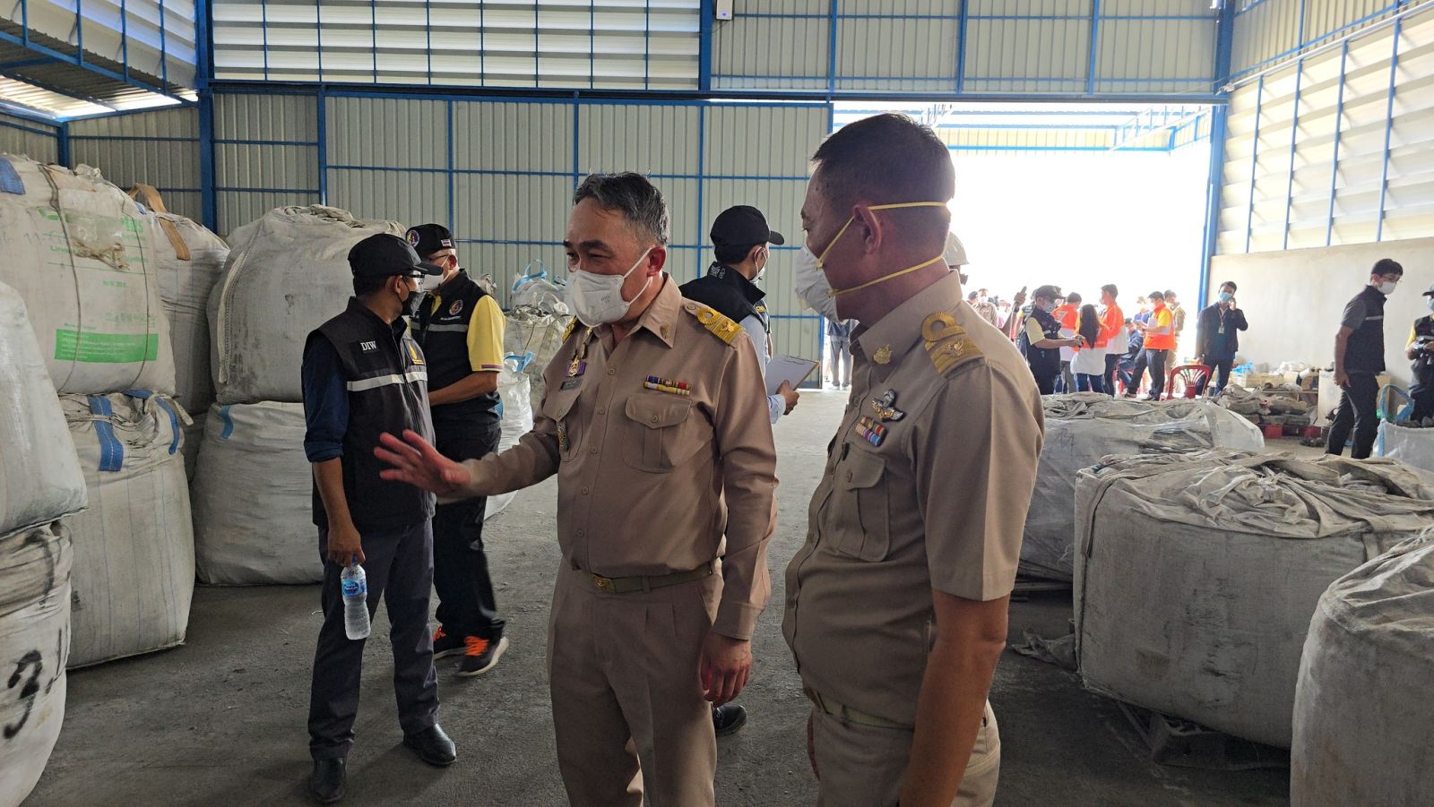 นายจุลพงษ์ ทวีศรี อธิบดีกรมโรงงานอุตสาหกรรม กล่าวว่า สืบเนื่องจากการสนธิกำลังกันของทางกระทรวงอุตสาหกรรม โดยกรมโรงงานอุตสาหกรรม และอุตสาหกรรมจังหวัดสมุทรสาคร ร่วมกับ ตำรวจ ปทส.และหน่วยงานที่เกี่ยวข้อง ได้สืบสวนหาเส้นทางการขนย้ายกากแร่แคดเมียม จากจังหวัดตาก มาที่จังหวัดสมุทรสาคร ก่อนส่งต่อไปยังจังหวัดชลบุรี ที่ได้มีการเข้าจับกุมไปก่อนหน้านี้แล้วนั้น ในวันนี้ได้ทำการขยายผลทั้งในจังหวัดสมุทรสาคร และจังหวัดชลบุรี ซึ่งจากการสอบถามผู้ต้องหาที่เป็นผู้ให้เช่าโกดังแห่งนี้ เบื้องต้นให้การรับว่า ทางบริษัทเจ แอนด์ บี เมททอล จำกัด ได้มาเช่าโกดังตามสัญญาเช่า เพื่อนำกากแคดเมียมที่บริษัท เจ แอนด์ บีฯ รับมาจากจังหวัดตากนั้น เข้ามาเก็บไว้ภายในโกดังแห่งนี้ ตั้งแต่ราวๆ 5 เดือนที่แล้ว เพื่อรอจำหน่ายต่อไป โดยในส่วนของเจ้าของผู้ให้เช่าโกดังแห่งนี้ ก็จะมีความผิดในฐานครอบครองกากแร่ที่มีการปนเปื้อนของสังกะสีและแคดเมียม ตาม พ.ร.บ.วัตถุอันตราย มีโทษจำคุก 2 ปี หรือ ปรับไม่เกิน 200,000 บาท หรือทั้งจำทั้งปรับ ซึ่งกากแร่แคดเมียมที่พบในโกดังแห่งนี้มีอยู่ราวๆ 312 ถุง หรือหากคิดเป็นน้ำหนักโดยรวมไม่น่าจะเกิน 500 ตัน ทั้งนี้ก็จะต้องไปดูสัญญาเช่าอีกด้วยว่า ตามสัญญาระบุไว้ 1,500 ตันนั้น ทำไมเหลือเพียงเท่านี้ ซึ่งเบื้องต้นทางเจ้าของโกดังบอกว่า ได้ส่งไปให้มิสเตอร์จาง ที่ถูกจับกุมได้เมื่อวันอาทิตย์ที่ผ่านมา เพราะฉะนั้นในเรื่องของตัวเลขน้ำหนักโดยรวมของกากแร่แคดเมียมล็อตนี้ทั้งหมด ถ้าเราดูยอดการขนส่งจากจังหวัดตากถึงโรงงานเจ แอนด์ บี เมททอล จำกัด จ.สมุทรสาคร ตามที่ระบุไว้ประมาณ 13,800 ตัน ตอนนี้ยอดรวมจากการประเมินที่ถูกตรวจพบแล้วทุกที่นั้น ก็ยังคงเหลือที่ต้องตามหาอีกราวๆ 4,900 ตัน โดยจะต้องมีการขยายผลไปเรื่อยๆ เพื่อตามหาส่วนที่ขาดหายไปกลับมาให้ได้ครบตามจำนวนที่เป็นจริง ทั้งนี้ก็จะต้องมุ่งไปทั้งสถานที่กักเก็บหรือโรงงาน ที่จะนำสินค้าไปกักเก็บไว้ รวมถึงจุดขนส่งสินค้าทางเรือ ก็มีทั้งท่าเรือกรุงเทพฯ กับ ท่าเรือแหลมฉบัง จ.ชลบุรี ล้วนเป็นพื้นที่เป้าหมายที่ต้องทำการขยายผลสืบสวนทั้งสิ้น