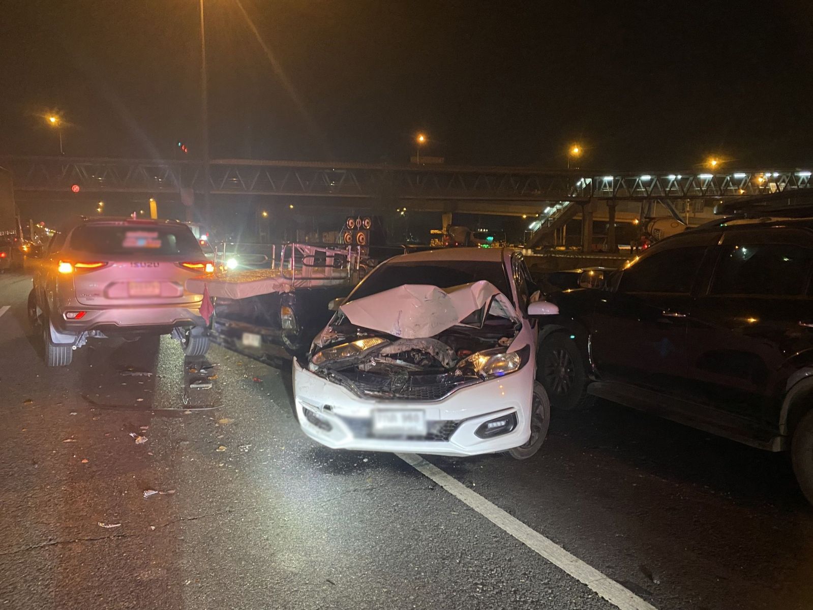 อุบัติเหตุหมู่ชนกันยับหลายคัน กลางถนนกาญจนาภิเษก ช่วงใต้ต่างระดับไทรน้อย จ.นนทบุรี