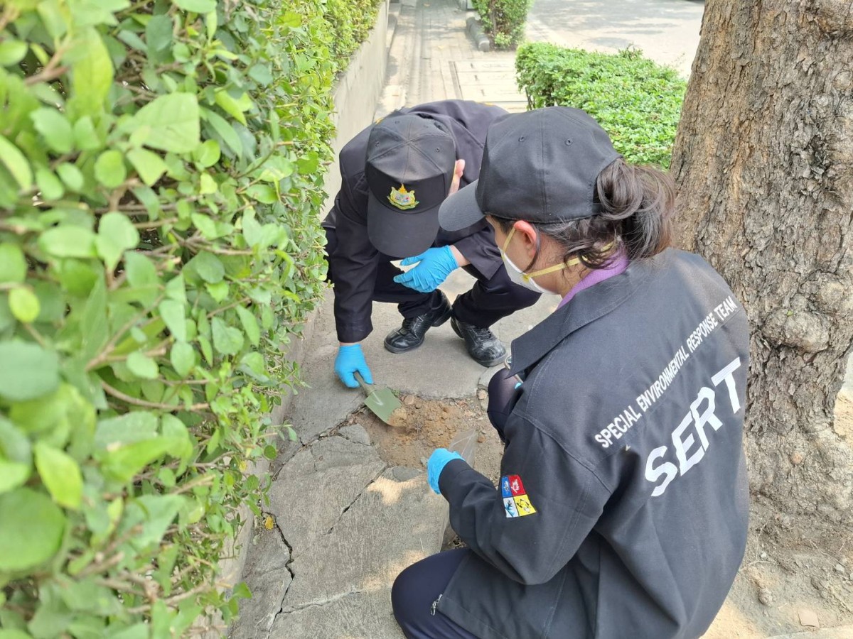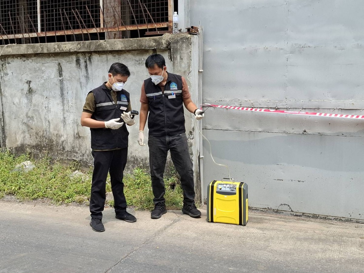 3. ตรวจวัดไอระเหยสารเคมีในบรรยากาศ จำนวน 3 จุด ได้แก่ บริเวณภายในโรงงาน หน้าโรงงาน และชุมชนห่างจากโรงงาน 250 เมตร ผลการตรวจไม่พบสารอันตรายในบรรยากาศ