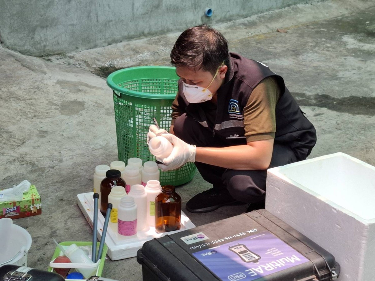 4. เก็บตัวอย่างน้ำทิ้งบริเวณลำรางภายในอาคารจำนวน 2 จุด และเก็บตัวอย่างน้ำผิวดินบริเวณโดยรอบพื้นที่โรงงาน จำนวน 3 จุด พบว่าคุณภาพน้ำเบื้องต้นทั้งสองพื้นที่อยู่ในเกณฑ์ปกติ เนื่องจากบริเวณเก็บกากแคดเมียมไม่มีกิจกรรมที่ใช้น้ำในการประกอบกิจการและไม่พบการประกอบกิจการ