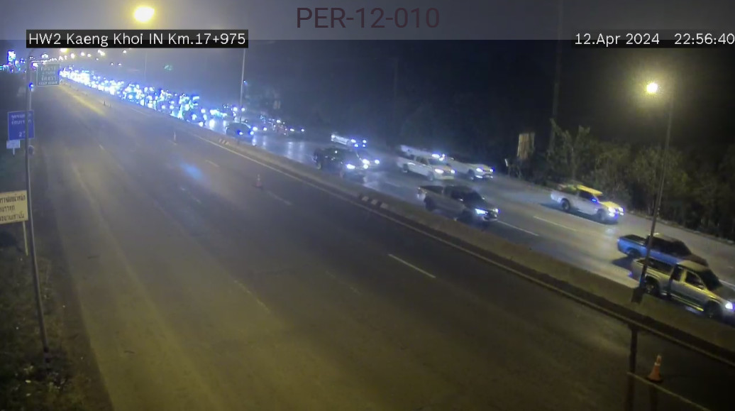 เวลา 23.00 น. วันที่ 12 เมษายน 2567 ถนนมิตรภาพ ฝั่งขาขึ้น ออกจากเมืองสระบุรี ชะลอตัวเนินทับกวางถึงแก่งคอย มวลเหล็ก ถึงปากช่อง - กลางดง รถแน่นเต็มพื้นที่