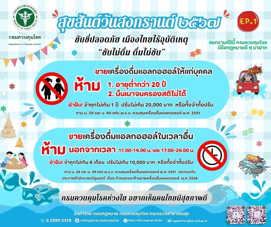 กรมควบคุมโรค สาดความห่วงใย ย้ำ ร้านค้าห้ามจำหน่ายสุรา ให้กับเด็กอายุต่ำกว่า 20 ปี หลังพบเยาวชนดื่มสุราแล้วขับรถ เกิดอุบัติเหตุในช่วงสงกรานต์