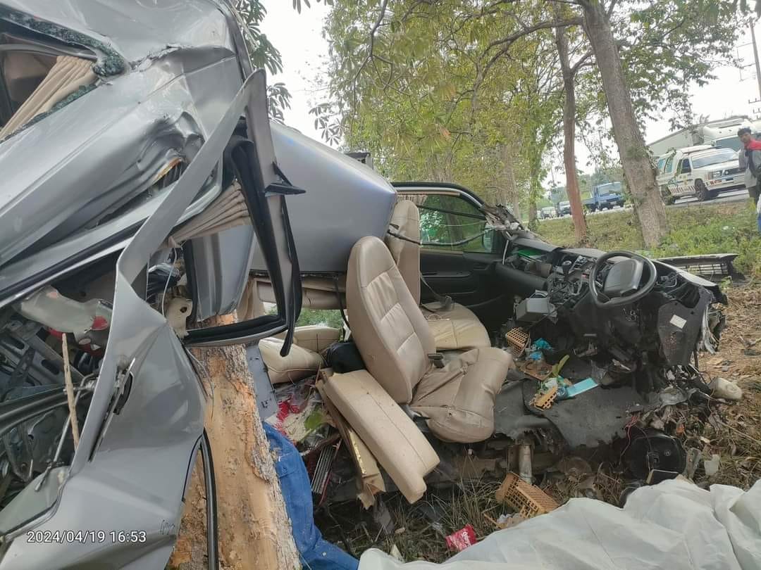 ที่เกิดเหตุ พบรถตู้โตโยต้า คอมมิวเตอร์ สีเทา ป้ายทะเบียน กรุงเทพมหานคร ลักษณะชนกับต้นไม้ข้างทาง สภาพหน้ารถยุบเข้าถึงห้องโดยสาร เสียหายพังยับ ตรวจสอบพบร่างของผู้เสียชีวิต 2 คน เป็นชายไทย อายุ 58 ปี และผู้หญิงไทย อายุ 60 ปี และมีผู้ได้รับบาดเจ็บทั้งหมด 6 ราย ทางอาสากู้ชี-กู้ภัยเร่งให้การช่วยเหลือและนำส่งโรงพยาบาลท่าโรงช้าง ในส่วนของสาเหตุอยู่ระหว่างการสอบสวนของเจ้าหน้าที่ตำรวจ