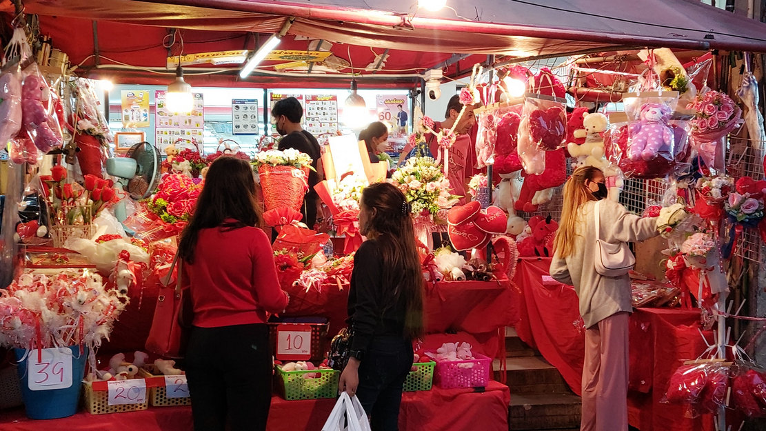 เวลา 23.10 น. วันที่ 14 กุมภาพันธ์ 2566 เพจเฟซบุ๊ก “ที่นี่ พัทยา” ได้โพสต์ภาพและข้อความ : โดยบรรยากาศทั่วภายในร้านมีทั้งตุ๊กตาและดอกไม้ ดอกกุหลาบ พวงกุญแจ และสินค้าอื่นๆ อีกมากมาย ที่ถูกจัดวางเอาไว้ เพื่อให้นักท่องเที่ยวทั้งชาวไทยและชาวต่างชาติ เดินเข้ามาเลือกชื้อสินค้าให้กับคนรู้ใจหรือคนรัก ซึ่งบรรยากาศปีนี้ดูคึกคักกว่าปีก่อนๆ เป็นอย่างมาก ส่วนบรรยากาศย่านวอคกิ้งสตรีท พัทยา ก็คึกคัก พบว่ามีนักท่องเที่ยวทั้งชาวไทยและชาวต่างชาติออกมาท่องเที่ยวในวอคกิ้งสตรีทกันอย่างต่อเนื่อง ภายในวอคกิ้งสตรีท และรอบๆชายหาดก็ยังมีเจ้าหน้าที่ตำรวจท่องเที่ยว คอยเดินตรวจตรา เพื่อดูแลความปลอดภัยให้กับนักท่องเที่ยว ซึ่งนักท่องเที่ยวที่เข้ามาซื้อดอกไม้ ตุ๊กตา จะมีทั้งนักท่องเที่ยวชาวไทยและชาวต่างชาติ ส่วนใหญ่นักท่องเที่ยวชาวต่างชาติจะซื้อให้กับคนรัก