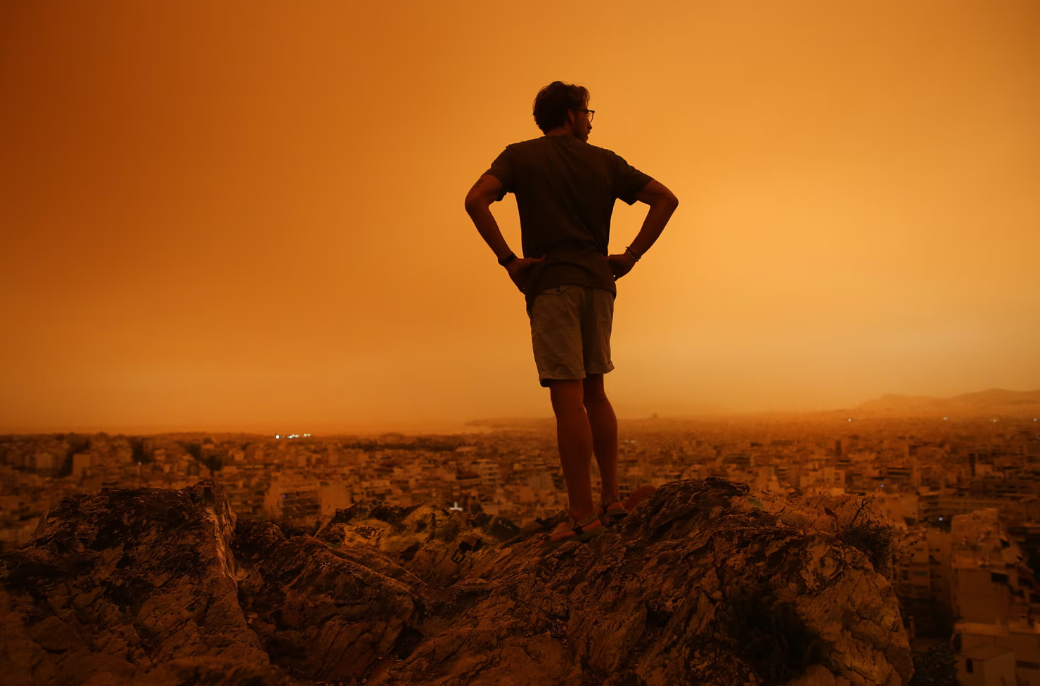 ลมแรงจากทางใต้ของประเทศกรีซพัดฝุ่นและทรายจากทะเลทรายซาฮาราเข้าปกคลุมกรุงเอเธนส์และเมืองอื่น ๆ ของประเทศเมื่อวันที่ 23 เม.ย. ทำให้ท้องฟ้าในหลายพื้นที่กลายเป็นสีส้ม ซึ่งเจ้าหน้าที่ทางการระบุว่า เป็นหนึ่งในเหตุการณ์เลวร้ายที่สุดที่เกิดขึ้นในประเทศนับตั้งแต่ปี 2018