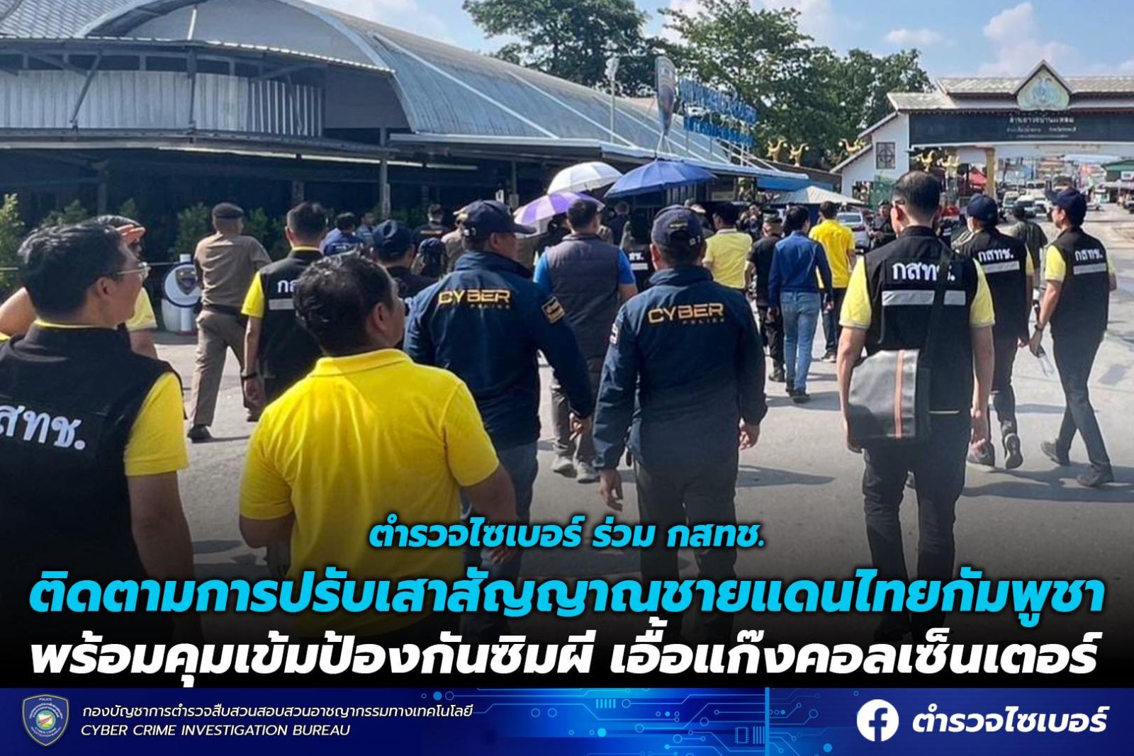 ตำรวจไซเบอร์ ร่วม กสทช. ติดตามการปรับเสาสัญญาณชายแดนไทยกัมพูชา พร้อมคุมเข้มป้องกันซิมผี เอื้อแก๊งคอลเซ็นเตอร์ ตามนโยบายของรัฐบาล โดย นายเศรษฐา ทวีสิน นายกรัฐมนตรี ได้สั่งการสำนักงานตำรวจแห่งชาติ