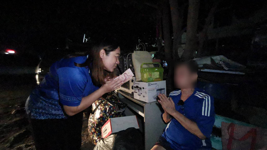 น.ส.อารีรัตน์ พรมมาลุม อายุ 33 ปี กล่าวว่า วันนี้เห็นลุงก็สงสารอยากให้ลุงมีที่อยู่ ก็อยากให้หน่วยงานมาช่วยเหลือลุง แกแก่แล้วเกือบ 70 ปี ลูกหลานพี่น้องก็ไม่มี วันนี้ก็ได้มอบเงิน ซื้ออาหารและน้ำมาให้ลุง โดยครูที่โรงเรียนรวบรวมเงินมาช่วยเหลือลุงหลังจากทราบว่าแกไม่มีเงินไม่มีที่พัก