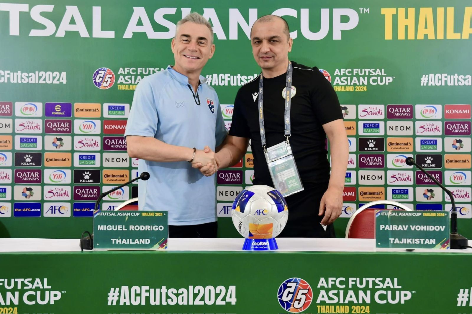 ภายในงานแถลงข่าว มิเกล โรดริโก้ หัวหน้าผู้ฝึกสอนฟุตซอลทีมชาติไทย กล่าวว่า "เกมเจอ ทาจิกิสถาน เราได้ทำการบ้านสเกาท์มาแต่ตั้งแต่ก่อนลงเตะเพราะเป็นคู่ที่เตะก่อนหน้าในรอบ 8 ทีมสุดท้าย แน่นอนว่ามาถึงรอบนี้แล้ว พวกเขาเป็นทีมที่มีความสามารถสูงอย่างแน่นอนและเราต้องสู้กันอย่างเต็มที่ ส่วนทีมไทยเรามาถึงจุดนี้ผ่านจุดที่กดดันที่สุดมาได้แล้ว นั้นคือการผ่านเข้าไปเล่นในฟุตซอลโลก2024 เรามีแฟนบอลที่ยิ่งใหญ่ ฉะนั้นเราก็คงมีเป้าหมายเดี่ยวคือการคว้าแชมป์เอเชียในบ้าน"