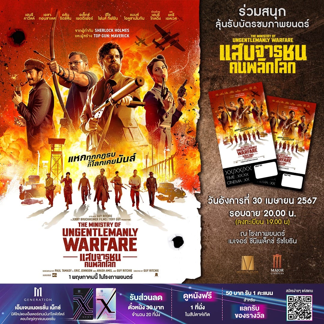 “The Ministry of Ungentlemanly Warfare” สร้างจากวีรกรรมจริงสุดมันส์ของเหล่าหน่วยลับที่ก่อตั้งโดย “วินสตัน เชอร์ชิล” ที่ตั้งใจแหกทุกกฎรบเพื่อซัดแหลกกองกำลังของจอมเผด็จการฮิตเลอร์ นำทีมลั่นทุกกระสุน บึ้มทุกศัตรูโดยโคตรทีมนักแสดง “เฮนรี คาวิลล์” (Man of Steel), “อลัน ริตช์สัน” (ซีรีส์ Reacher), “เอซา กอนซาเลซ” (Baby Driver) และ “เฮนรี โกลดิง” (Crazy Rich Asians)