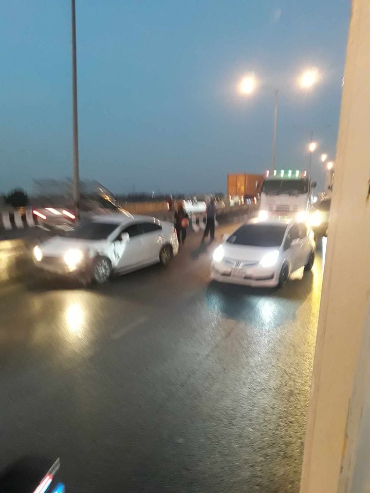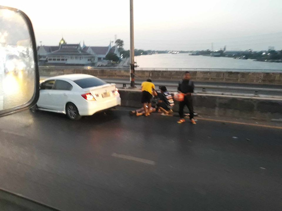 บนสะพานปทุมธานี 2 รถบรรทุกชนกับรถเก๋ง มีผู้บาดเจ็บ 1 ราย กีดขวางจราจรเลนขวา