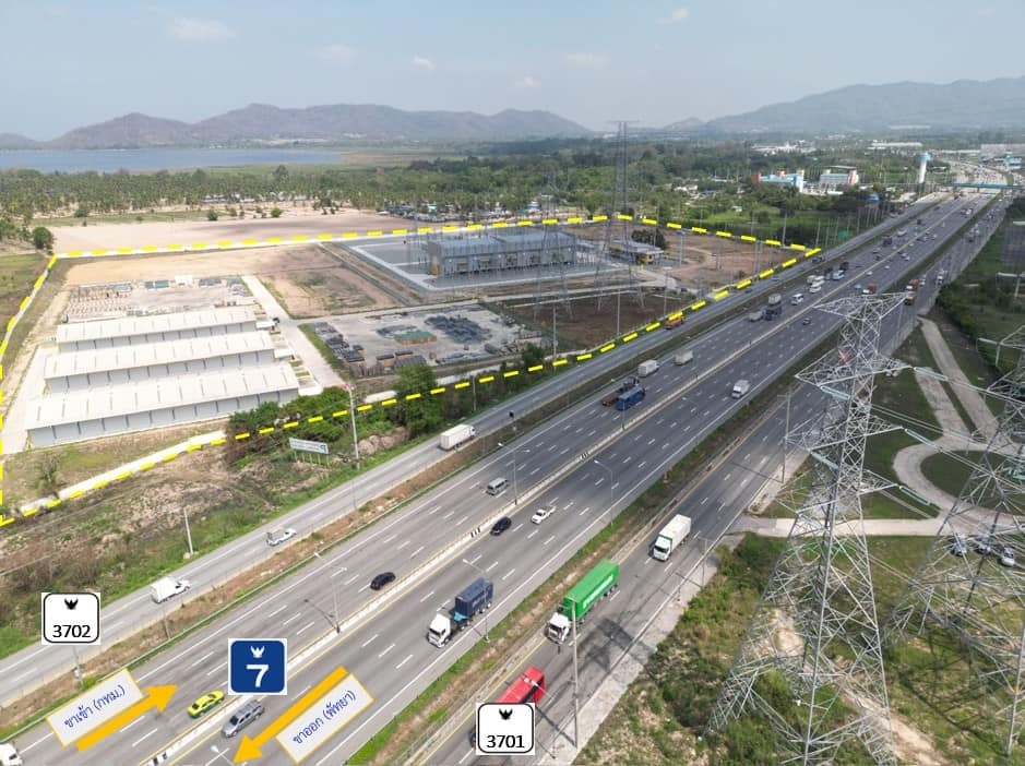 การไฟฟ้าฝ่ายผลิตแห่งประเทศไทย (กฟผ.) กำหนดดำเนินการขึงสายส่งไฟฟ้าแรงสูงพาดข้ามถนน จากสถานีไฟฟ้าย่อยชลบุรี 2 ไปยังสถานีไฟฟ้าย่อยบ่อวิน จ.ชลบุรี ของงานก่อสร้างระบบโครงข่ายไฟฟ้า 230 กิโลโวลต์