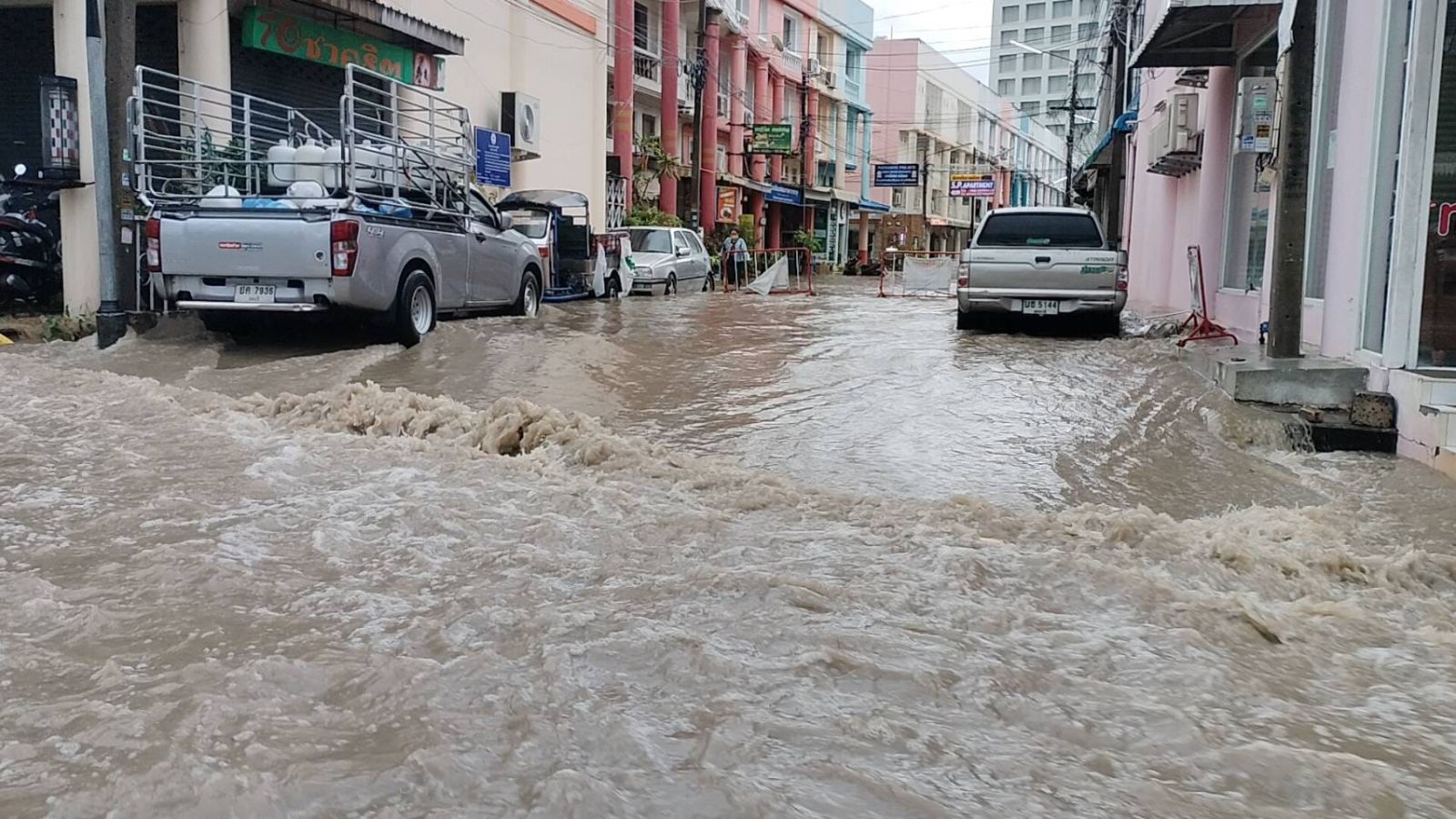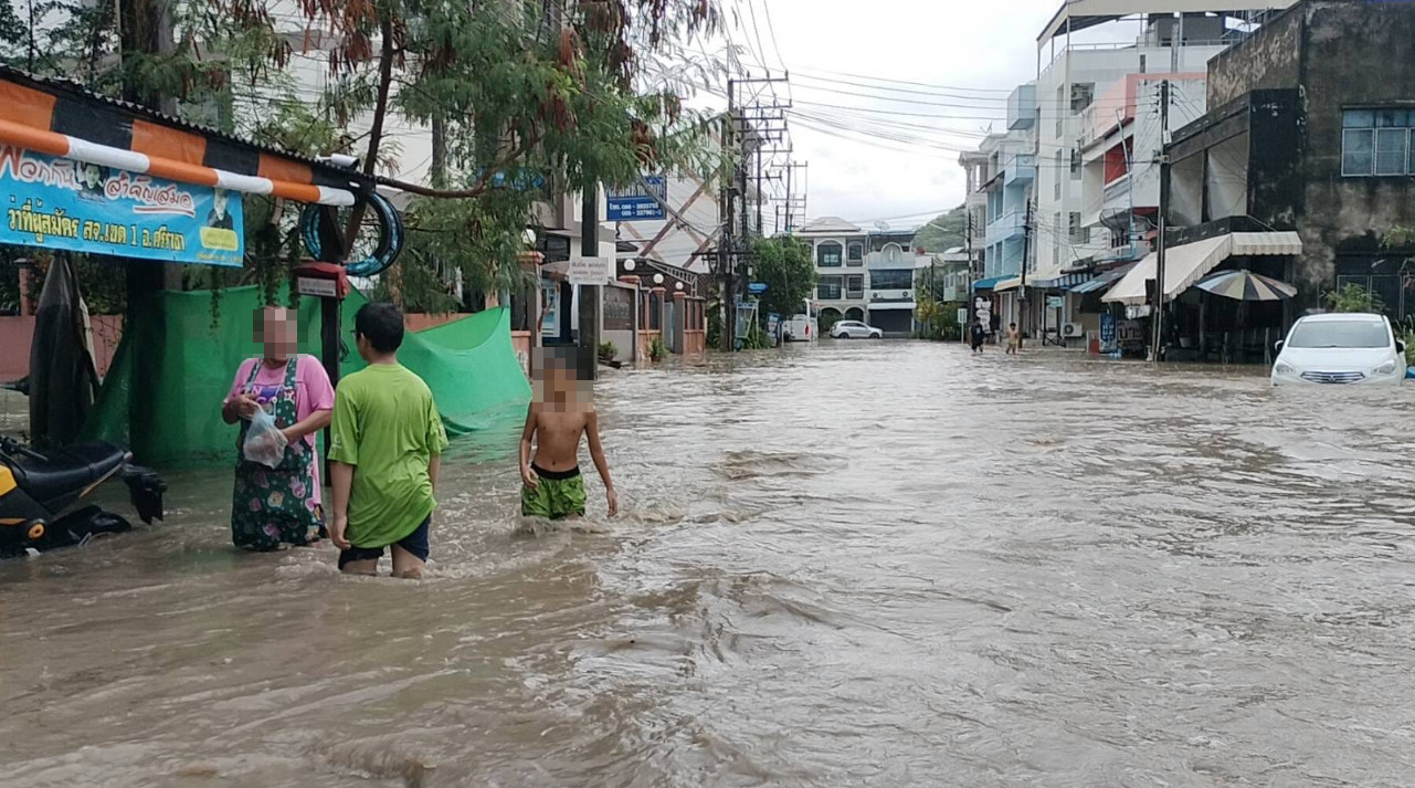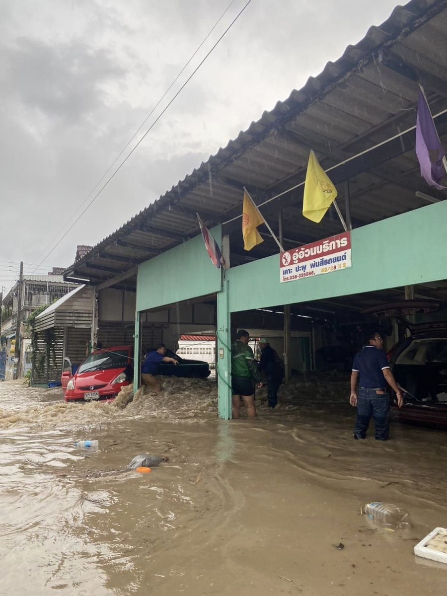 ขณะที่บริเวณถนนอัสสัมชัญ ศรีราชา เกิดน้ำท่วมบ้านเรือนฉับพลันในพื้นที่ซอยโรงเป็ด ต.สุรศักดิ์ อ.ศรีราชา จ.ชลบุรี ชาวบ้านขนของขึ้นที่สูงไม่ทัน โดยเฉพาะเครื่องใช้ไฟฟ้า รถจักรยานยนต์ ได้รับความเสียหาย ส่วนที่บริเวณซอยสุดสาคร และถนนเก้ากิโล ซอย 21 ได้รับผลกระทบจากน้ำท่วมจนปิดทางเข้าออกไม่สามารถออกจากชุมชนได้ เนื่องจากเป็นแอ่งกระทะ ชาวบ้านได้รับความเดือดร้อนเป็นอย่างมาก