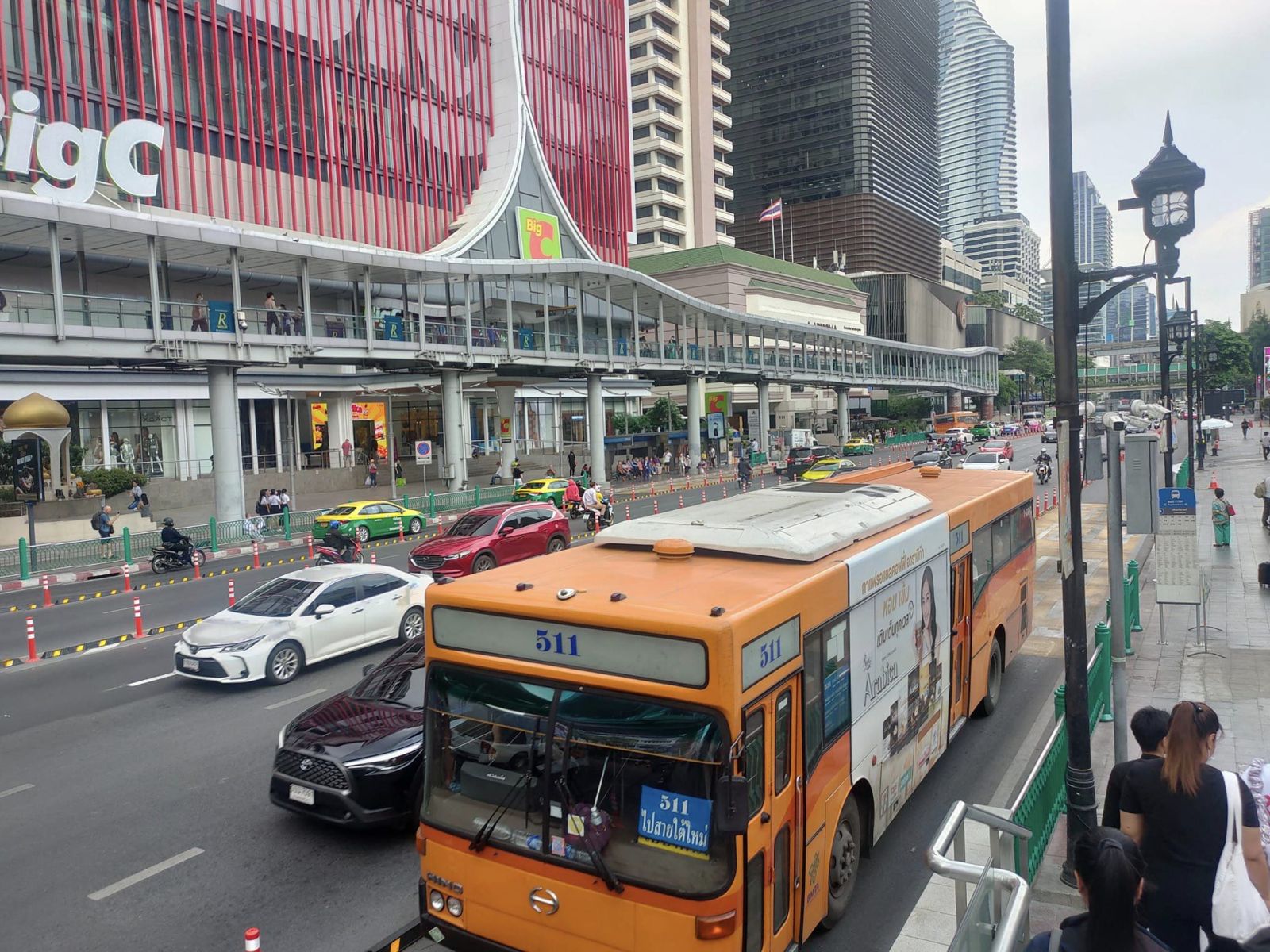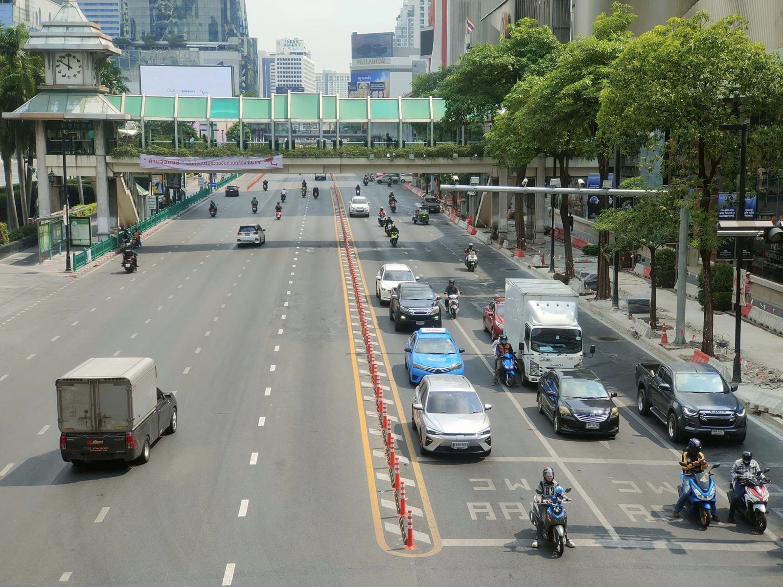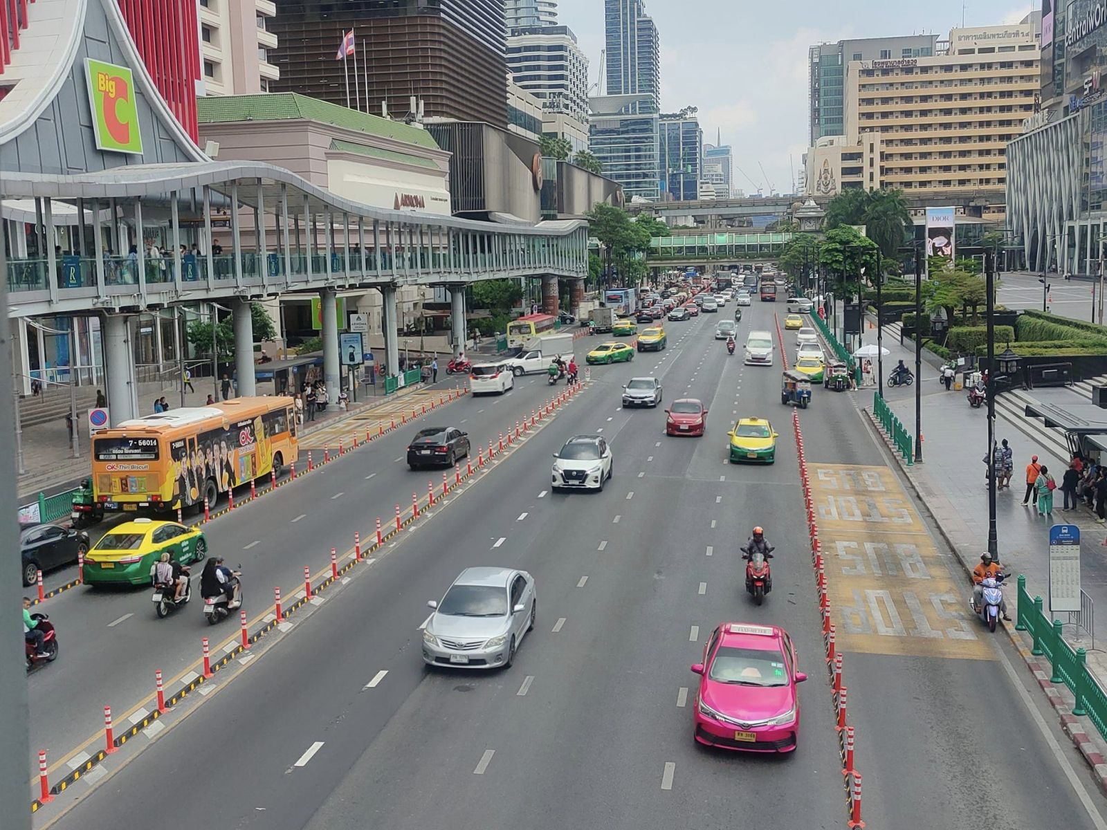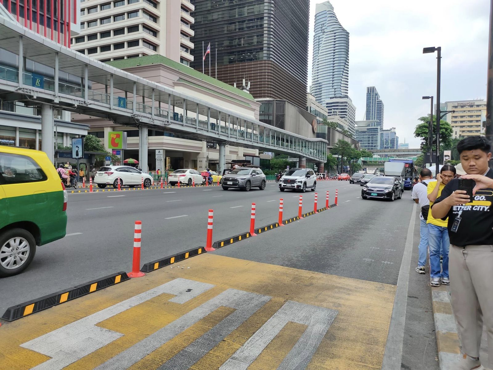 กรุงเทพมหานครจึงได้ดำเนินการจัดทำป้ายประชาสัมพันธ์ แจ้งจุดจอดให้บริการรถแท็กซี่และรถสามล้อในพื้นที่ของศูนย์การค้า โดยจัดทำในรูปแบบ 3 ภาษา (ไทย -อังกฤษ -จีน) ติดตั้งบริเวณจุดจอดรถโดยสารประจำทางทั้งสองฝั่ง และติดตั้งป้ายประชาสัมพันธ์ให้ข้อมูลแก่ผู้ใช้รถยนต์ทั่วไปได้ทราบว่าช่องทางซ้ายรถทุกประเภทสามารถเข้าใช้ได้ตามปกติ เพียงแต่ไม่สามารถจอดแช่ได้