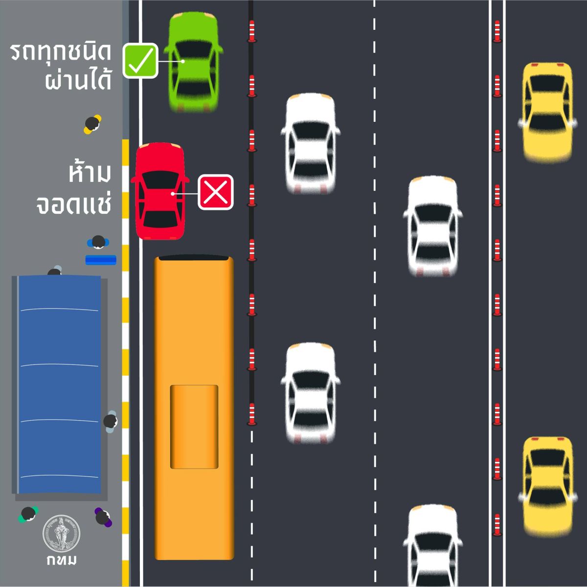 พล.ต.ต.รวัช วงศ์สง่า รองผู้บัญชาการตำรวจนครบาล กล่าวว่า กองบัญชาการตำรวจนครบาล ได้ให้ความร่วมมืออย่างเต็มที่และพร้อมทำงานร่วมกับกรมการขนส่งทางบก ในการบังคับใช้กฎหมายและมีบทลงโทษสำหรับผู้กระทำความผิด โดยจะเพิ่มความเข้มงวัดในการกวดขันวินัยจราจรและมาตรการลงโทษตามกฎหมายแก่ผู้กระทำผิดฝ่าฝืนจอดในพื้นที่ห้ามจอดต่อไป