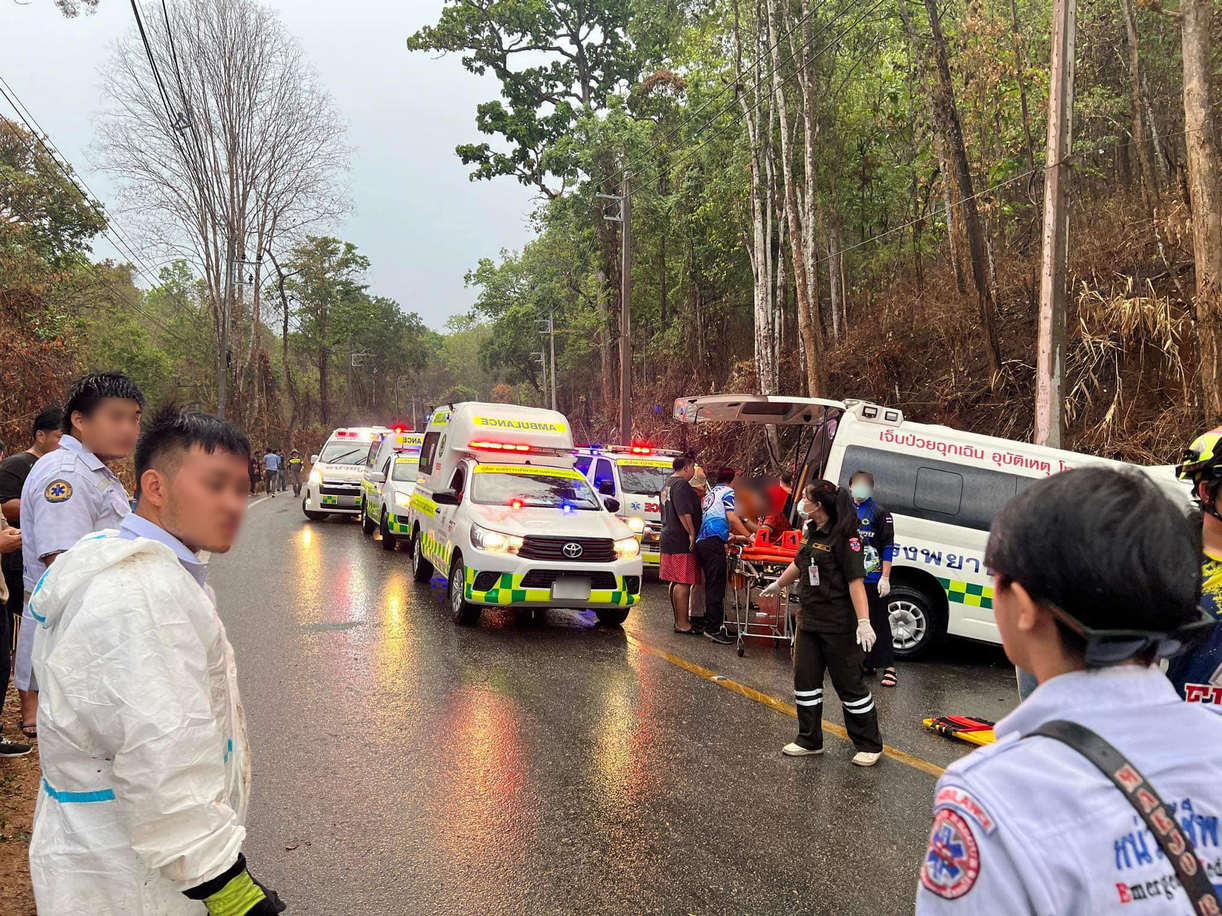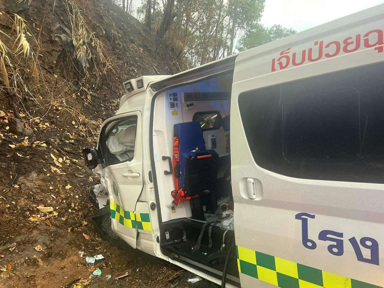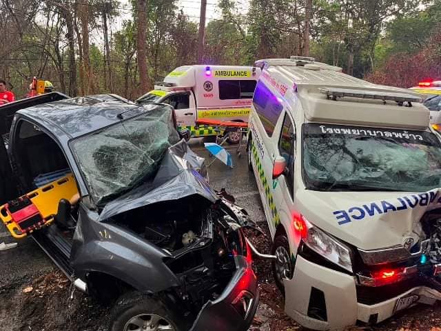 รถกระบะเสียหลักพุ่งชนรถพยาบาล กลางถนนสายเส้นเชียงใหม่-พร้าว เสียชีวิต 5 ราย รวมคุณแม่ตั้งครรภ์พร้อมลูกในท้อง จ.เชียงใหม่