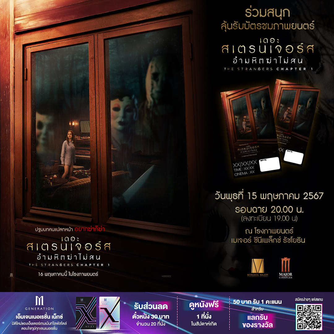 คอหนังโหดชาวไทยเตรียมระทึกไปกับการไล่ฆ่าครั้งใหม่ของ “ฆาตกรหน้ากาก เดอะ สเตรนเจอร์ส” เมื่อมันมาแบบไม่เลือกเวลาและฆ่าแบบไม่สนกฎเกณฑ์ใน “The Strangers: Chapter 1 อำมหิตฆ่าไม่สน” ภาพยนตร์สยองขวัญที่เป็นจุดเริ่มต้นความอำมหิต ปฐมบทแฟรนไชส์การเชือดสุดระทึก กับเรื่องราวของคู่รักดวงซวย ที่วางแผนไปเริ่มชีวิตใหม่ ในแถบแปซิฟิกนอร์ทเวสต์ แต่โชคไม่เข้าข้าง เมื่อรถของพวกเขาดันเสียกลางทาง ทำให้ต้องค้างคืนที่บ้านพักกลางป่าแห่งหนึ่ง โดยที่ไม่รู้เลยว่า ตัวเองกำลังจะกลายเป็นเหยื่อของกลุ่มคนแปลกหน้า ผู้สวมหน้ากากสุดประหลาด ที่พร้อมเคาะประตูบ้านและไล่เชือดไม่สนหน้าไหน