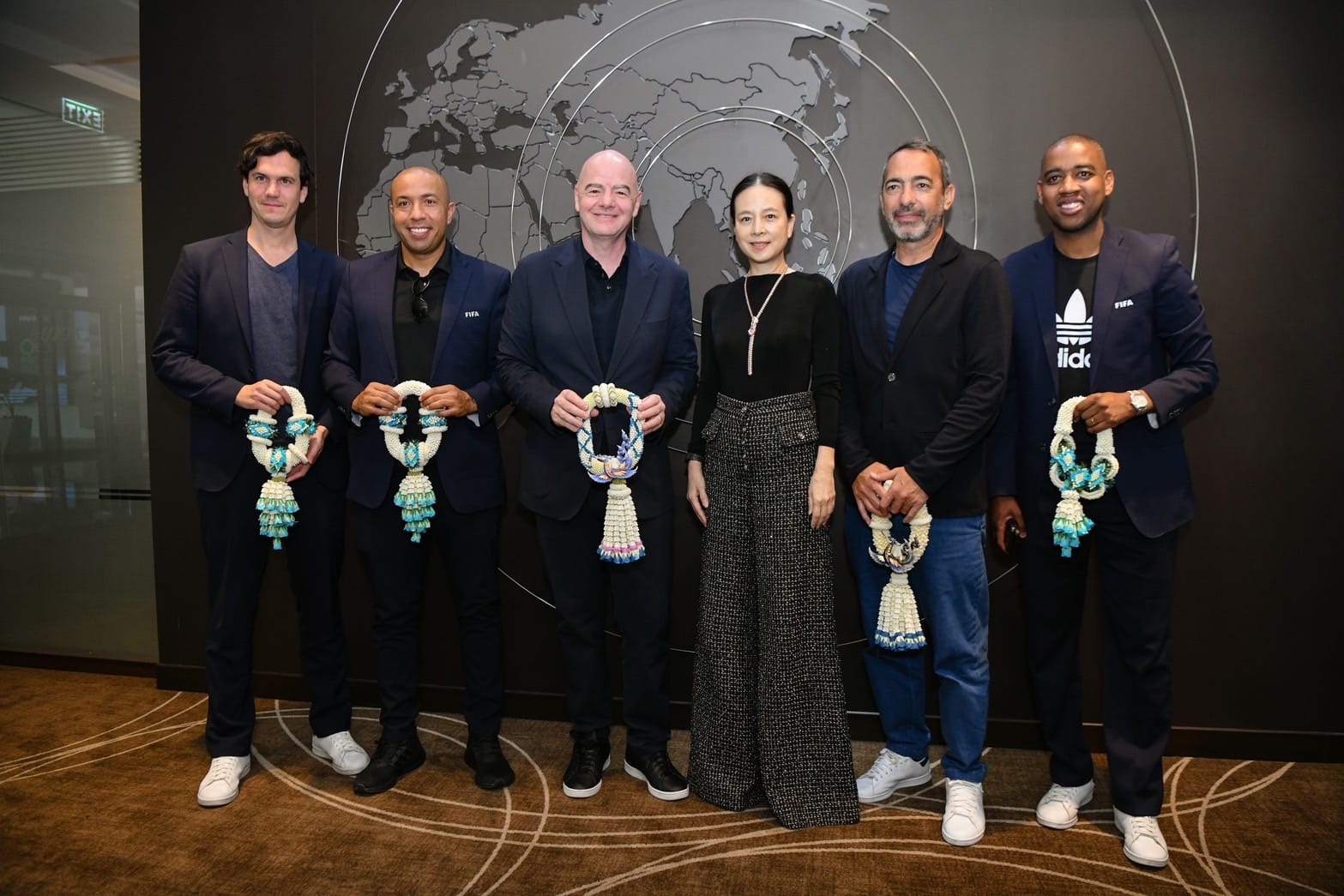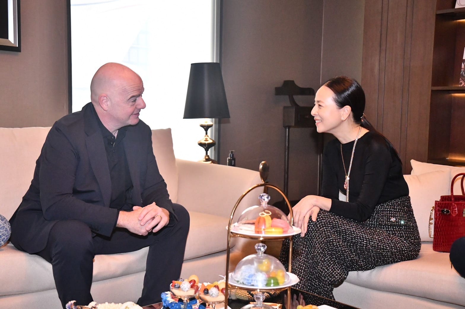 "มาดามแป้ง" นวลพรรณ ล่ำซำ นายกสมาคมกีฬาฟุตบอลฯ ให้การต้อนรับ จานนี อินฟานติโน ประธานสหพันธ์ฟุตบอลนานาชาติ (ฟีฟ่า) และ ชีค ซัลมาน บิน อิบราฮิม อัล คอลิฟา ประธานสหพันธ์ฟุตบอลแห่งเอเชีย (เอเอฟซี) หลังเดินทางถึงประเทศไทยเป็นที่เรียบร้อย วันที่ 12 พฤษภาคม 2567 เพื่อเตรียมเข้าร่วมประชุม ฟีฟ่า คองเกรส ครั้งที่ 47 ณ ประเทศไทย ระหว่างวันที่ 13-17 พฤษภาคมนี้