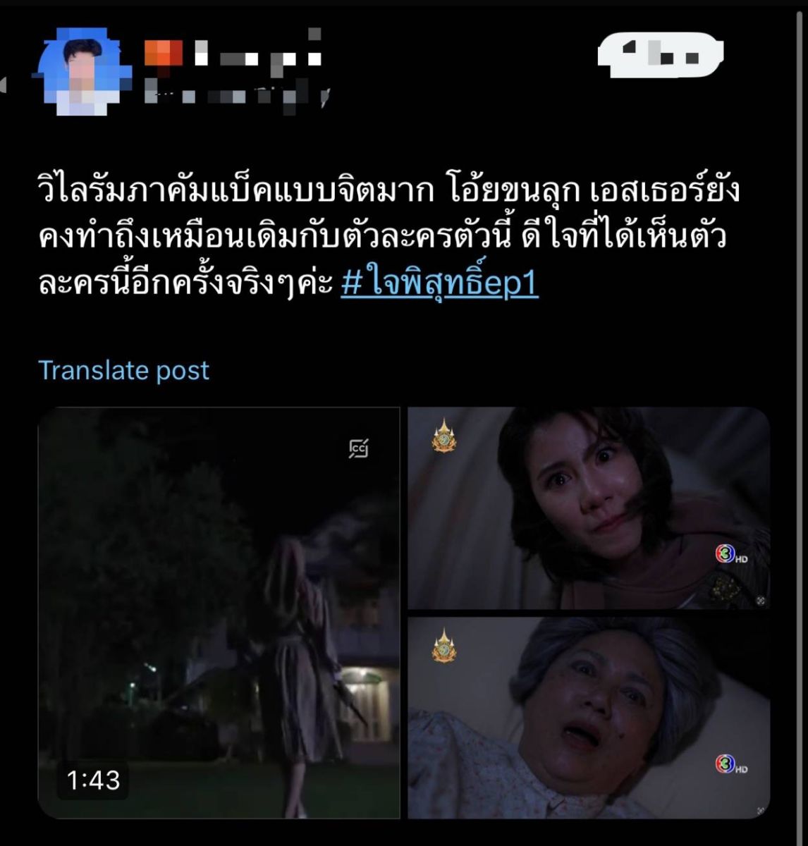 กลายเป็นอีพีเปิดตัวที่ถูกพูดถึงเต็มโลกโซเชียลจริง ๆ เพราะนอกจากฉากเปิดประเดิมเคมีคู่พระ-นาง สุดช็อค ก็ยังมีฉากที่ทำคนดูเซอร์ไพรส์หนักมาก กับช่วงปรากฏตัวชวนขนลุกของ หม่อมหลวงวิไลรัมภา การกลับมาอีกครั้งในรอบหลายปีของ เอสเธอร์ สุปรีย์ลีลา จากละครชุด สุภาพบุรุษจุฑาเทพ เรื่อง คุณชายรณพีร์ มาพร้อมกับปมแค้นในอดีตที่ทำคนดูตื่นเต้น จนทำเรตติ้ง New High ตั้งแต่ตอนแรก จากกลุ่มผู้ชมกรุงเทพฯ ฟาดไปถึง 4.1 กลุ่ม 15 BU+ (Bangkok and Urban) 3.5 ทุบเรตติ้งสนั่นไปทั่วประเทศถึง 2.7 กลายเป็นผลผลิตที่แฟน ๆ อยากให้ความเห็นไปในทิศทางเดียวกันว่า ทำถึง!! งานดีกว่าที่คาด ภาพสวย ตัดต่อสมูท เล่าเรื่องดี
