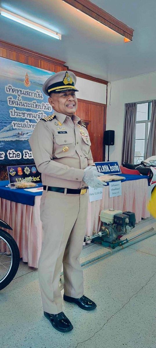 วันจันทร์ที่ 13 พฤษภาคม 2567 เวลา 13.00 น นาวาเอกวรรณะ เกื้อทิพย์ ผู้บังคับการหน่วยเรือรักษาความสงบเรียบร้อยตามลำแม่น้ำโขง เขตนครพนม พร้อมด้วย น.ท.ไพโรจน์ แก้วพลอย หน.สน.เรือบ้านแพง , น.ท.เตชธร ฉิมพาลี หน.สน.เรือธาตุพนม พร้อมด้วยหัวหน้างานหน่วยงานความมั่นคง ร่วมแถลงข่าวการตรวจยึดยาเสพติดให้โทษประเภท 1 (ยาบ้า) จำนวน ประมาณ 72,000 เม็ด และเรือกีบเพลายาว พร้อมเครื่องยนต์ จำนวน 1 ลำได้ที่บริเวณเขื่อนป้องกันตลิ่งแม่น้ำโขง บ.หาดทรายเพ ต.หนองเทา อ.ท่าอุเทน และเมื่อวันที่ 12 พฤษภาคม 2567 น.อ.วรรณะ เกื้อทิพย์ ผบ.นรข.เขตนครพนม ได้รับแจ้งจากสายลับ (ขอปกปิดนาม เพื่อหวังเงินรางวัลนำจับ) ว่าจะมีการลักลอบนำรถจักรยานยนต์ออกนอกราชอาณาจักรโดยผิดกฎหมายในบริเวณพื้นที่ บ้านหลักศิลา ต.พระกลางทุ่ง อ.ธาตุพนม จ.นครพนม ซึ่งเป็นพื้นที่รับผิดชอบ นรข.เขตนครพนม จึงได้แจ้ง พล.ร.ต.นรินทร์ ขาวเจริญ ผบ.นรข. ทราบ พร้อมกับสั่งการให้ น.ท.เตชธร ฉิมพาลี หน.สน.เรือธาตุพนม จัดชุดปฏิบัติการข่าวของ สน.เรือธาตุพนม ติดตามความเคลื่อนไหว และได้นำกำลังตรวจสอบพื้นที่โดยรอบได้พบผู้ต้องหา จำนวน 1 คน นอนอยู่ในบริเวณป่าหญ้าทางทิศใต้ห่างจากจุดเกิดเหตุประมาณ 20 เมตร จากนั้นได้นำผู้ต้องหาพร้อมรถจักรยานยนต์ จำนวน 4 คัน มาที่ บก.นรข.เขตนครพนม เพื่อจัดทำบันทึกจับกุม – ตรวจยึด พร้อมกับได้นำผู้ต้องหาพร้อมรถจักรยานยนต์ จำนวน 4 คัน นำส่งพนักงานสอบสวน สภ.หลักศิลา เพื่อดำเนินการตามกฎหมายต่อไป