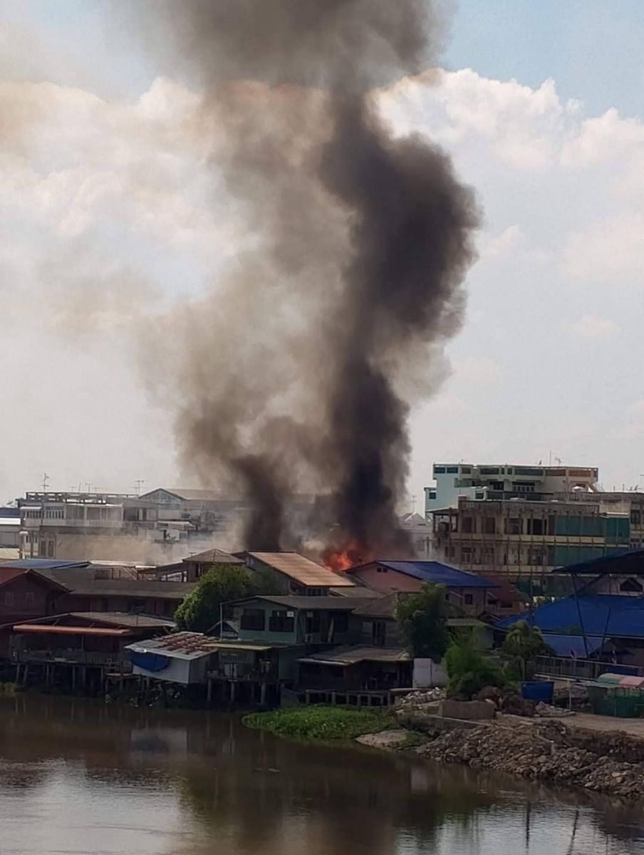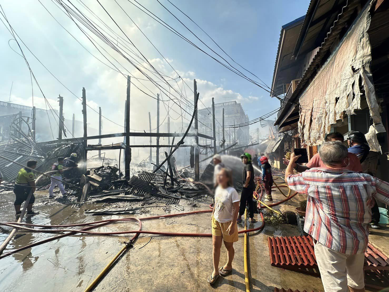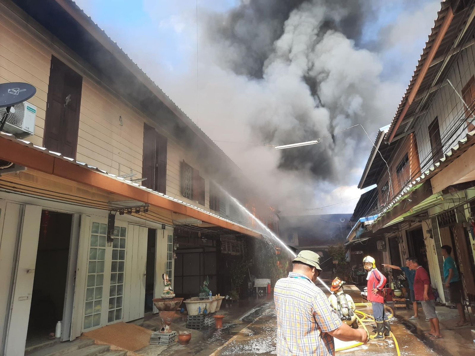 ไฟไหม้บ้านร้าง ย่านตลาดเก่าสามพราน แล้วลุกลามเสียหายวอด 10 กว่าคูหา จ.นครปฐม