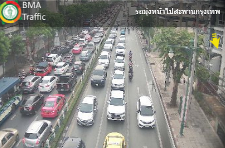 - สะพานพระปกเกล้า และสะพานพุทธยอดฟ้า ขาออก มุ่งหน้าถนนประชาธิปก ติดขัดมาก ท้ายแถวสะสมทางขึ้นสะพานฝั่งพระนคร