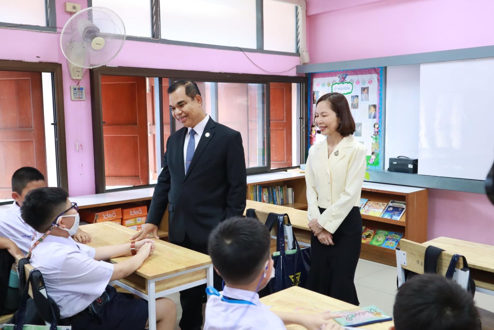 วันที่ 16 พ.ค.2567 ว่าที่ร้อยตรี ธนุ วงษ์จินดา เลขาธิการคณะกรรมการการศึกษาขั้นพื้นฐาน (เลขาธิการ กพฐ.) พร้อมด้วย นางวรางคณา ไชยเรือน ผู้อำนวยการสำนักงานเขตพื้นที่การศึกษาประถมศึกษากรุงเทพมหานคร และคณะทำงาน ลงพื้นที่ติดตามตรวจเยี่ยมการเปิดภาคเรียนที่ 1 ปีการศึกษา 2567 ณ โรงเรียนอนุบาลสามเสนฯ กรุงเทพมหานคร