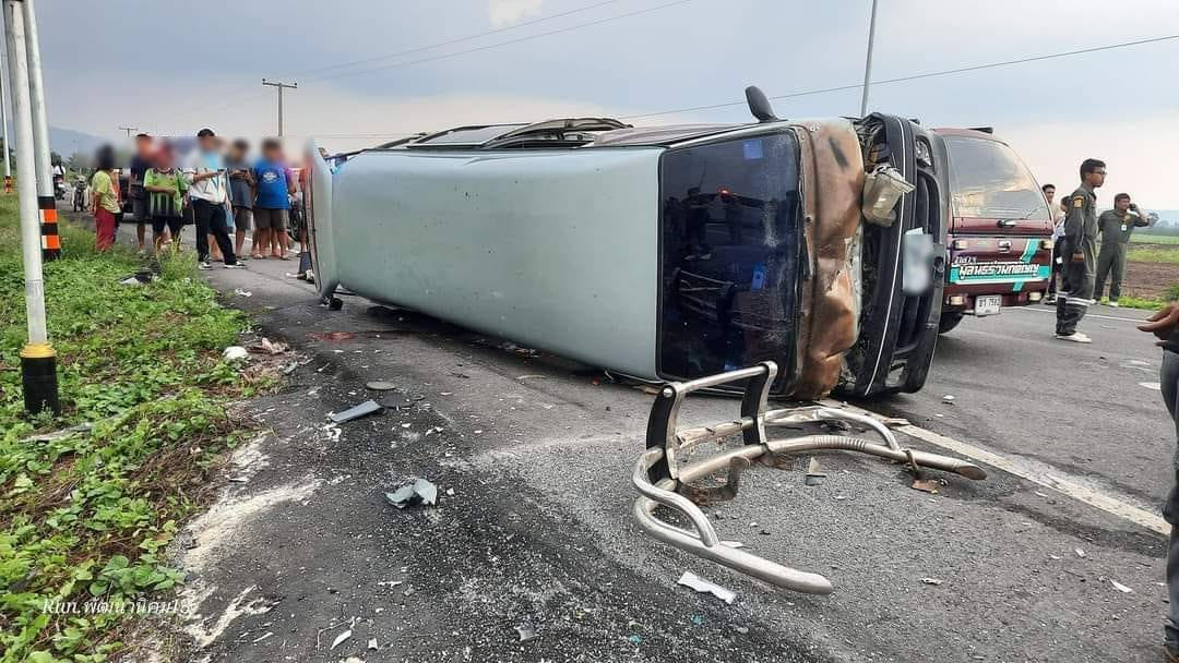รถตู้รับ-ส่งนักเรียน ชนกับรถเก๋ง กลางแยกวัดใจ บาดเจ็บรวม 10 กว่าราย จ.ลพบุรี