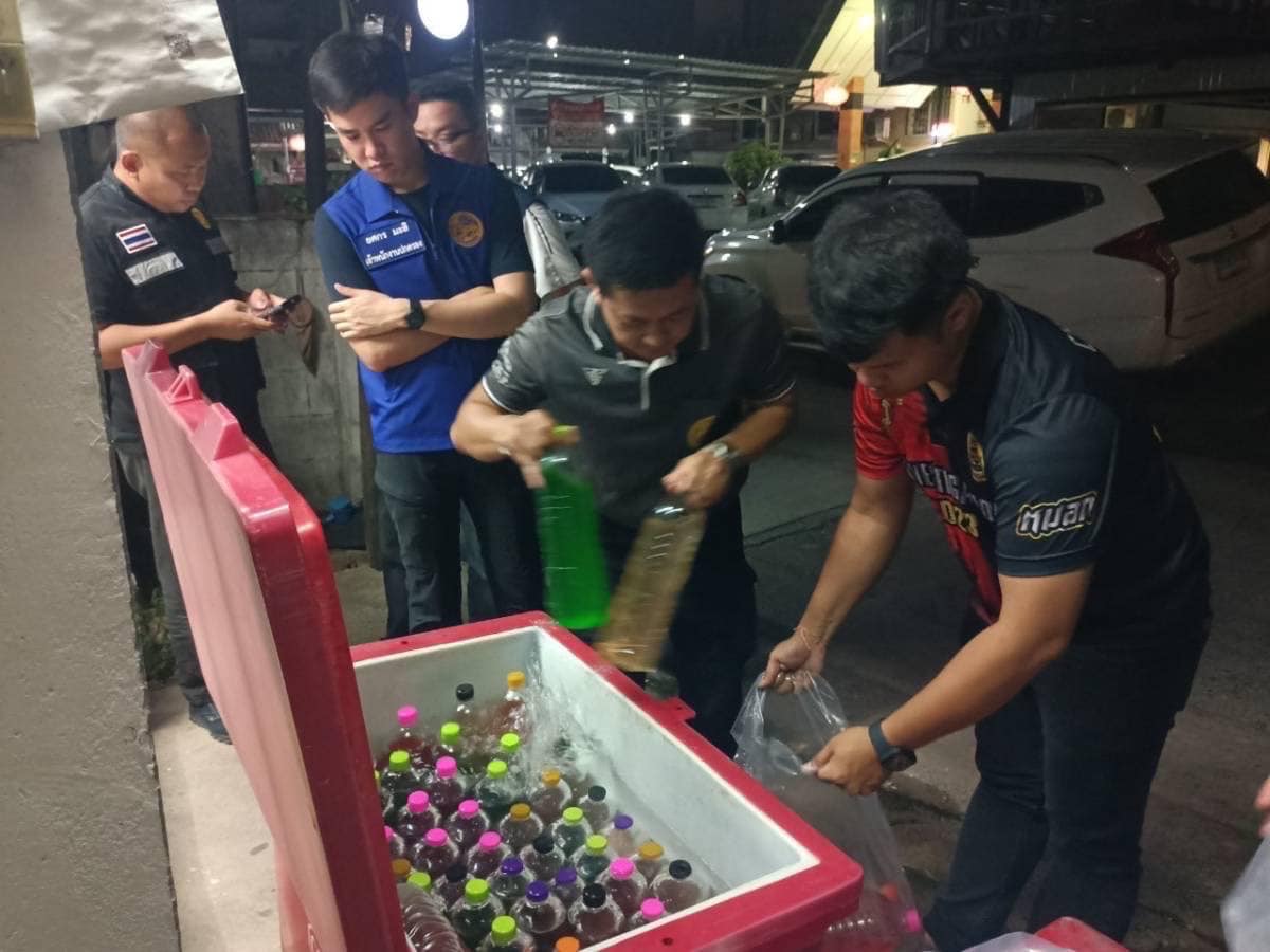 นายไกรสร กองฉลาด ผู้ว่าราชการจังหวัดขอนแก่น กล่าวต่ออีกว่า จากการดำเนินการลงพื้นที่ของฝ่ายปกครอง และเจ้าหน้าที่ตำรวจภูธร พบร้านค้าลักลอบจำหน่ายกระท่อม จำนวน 4 ร้าน ได้แก่ 1) แดงเจริญใบ 6 ตำบลในเมือง อำเภอเมืองขอนแก่น จังหวัดขอนแก่น พบผู้จำหน่ายน้ำกระท่อม จำนวน 1 ราย ทราบชื่อว่า นายพุฒิพงศ์ (สงวนนามสกุล) โดยพบการจำหน่ายพืชกระท่อมบรรจุขวดโดยไม่มีใบอนุญาต และไม่มีการปิดป้ายเตือนมิให้เยาวชนอายุต่ำกว่า 18 ปี เข้ามาซื้อน้ำกระท่อมบรรจุขวดไปบริโภค จึงได้ยึดของกลาง เป็นน้ำกระท่อมบรรจุขวด (ขนาด 1 ลิตร) จำนวน 53 ขวด และแจ้งข้อกล่าวหาเบื้องต้น (สำหรับร้านค้า) ดังนี้ 1) จำหน่ายน้ำกระท่อมบรรจุขวด โดยผู้ผลิตนั้นไม่มีใบอนุญาต ตาม พ.ร.บ. อาหาร พ.ศ. 2522 มาตรา 4, 5, 6 (8) ประกอบมาตรา 50 และ 2) เป็นผู้ขายใบกระท่อม หรือ อาหารตามกฎหมายว่าด้วยอาหารที่มีใบกระท่อมเป็นวัตถุดิบ หรือ ส่วนประกอบ โดยไม่ปิดประกาศ หรือ แจ้ง ณ สถานที่ขาย ให้ทราบถึงข้อห้ามแก่บุคคล ตาม พ.ร.บ. พืชกระท่อม พ.ศ. 2565 มาตรา 24 จากนั้นได้นำตัวผู้กระทำความผิดส่งพนักงานสอบสวน สภ.เมืองขอนแก่น เพื่อดำเนินคดีตามกฎหมายต่อไป 2) ร้านโรงต้มนครซำ บริเวณ ซอยมิตรภาพ 2 ตำบลในเมือง อำเภอเมืองขอนแก่น จังหวัดขอนแก่น พบลักลอบจำหน่ายเครื่องดื่มแอลกอฮอล์โดยไม่ได้รับอนุญาตจากเจ้าพนักงานสรรพสามิต เจ้าหน้าที่จึงได้แจ้งข้อกล่าวหาเบื้องต้นต่อผู้รับว่าเป็นผู้ดูแลร้าน ทราบชื่อว่า นายยงยุทธ (สงวนนามสกุล) ว่า "จำหน่ายสุราโดยไม่ได้รับอนุญาต" และนำตัวผู้กระทำความผิดส่งพนักงานสอบสวน สภ.เมืองขอนแก่น เพื่อดำเนินคดีตามกฎหมายต่อไป 3) ร้านท้ายซอยมีใบ บริเวณหมู่บ้านเซนทารา ถนนบ้านกอก อำเภอเมืองขอนแก่น จังหวัดขอนแก่น พบผู้จำหน่ายน้ำกระท่อม จำนวน 1 ราย ทราบชื่อว่า นายอนุชา (สงวนนามสกุล) โดยพบการจำหน่ายพืชกระท่อมบรรจุขวด โดยไม่มีใบอนุญาต ไม่มีการปิดป้ายเตือนมิให้เยาวชนอายุต่ำกว่า 18 ปี เข้ามาซื้อน้ำกระท่อมบรรจุขวดไปบริโภค และพบยาแก้ไอชนิดน้ำจำนวนมาก จึงได้ยึดของกลาง เป็นน้ำกระท่อมบรรจุขวด (ขนาด 1.5 ลิตร) จำนวน 38 ขวด ยาแก้ไอยี่ห้อ Datissin ชนิดน้ำ จำนวน 8 ขวด และใบกระท่อมสดน้ำหนัก 1.5 กิโลกรัม เจ้าหน้าที่จึงได้แจ้งข้อกล่าวหาเบื้องต้น (สำหรับร้านค้า) ดังนี้ 1) จำหน่ายน้ำกระท่อมบรรจุขวดโดยผู้ผลิตนั้นไม่มีใบอนุญาต ตาม พ.ร.บ. อาหาร พ.ศ. 2522 มาตรา 4, 5, 6 (8) ประกอบมาตรา 50 2) เป็นผู้ขายใบกระท่อม หรือ อาหารตามกฎหมายว่าด้วยอาหารที่มีใบกระท่อมเป็นวัตถุดิบหรือส่วนประกอบ โดยไม่ปิดประกาศ หรือแจ้ง ณ สถานที่ขาย ให้ทราบถึงข้อห้ามแก่บุคคล ตาม พ.ร.บ. พื