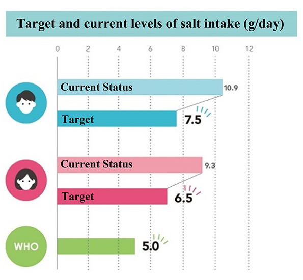 ช้อนเกลือไฟฟ้าจะมีน้ำหนัก 60 กรัม แบตเตอรี่เป็นแบบลิเทียม สามารถชาร์จไฟฟ้าได้ แต่ก็มีข้อจำกัดสำหรับผู้ที่ติดตั้งเครื่องกระตุ้นหัวใจ เครื่องวัดชีพจร หรือคนที่มีอาการแพ้โลหะ ก็อาจไม่เหมาะที่จะใช้อุปกรณ์ชิ้นนี้ จากที่คนญี่ปุ่นนิยมรับประทานอาหารรสเค็ม และมีผู้ป่วยเป็นโรคไตเพิ่มขึ้นในแต่ละปี ซึ่งผู้ผลิตเชื่อว่า อุปกรณ์นี้อาจมีส่วนช่วยลดความเสี่ยงต่อการเป็นโรคไตจากการบริโภคอาหารเค็มจัดได้